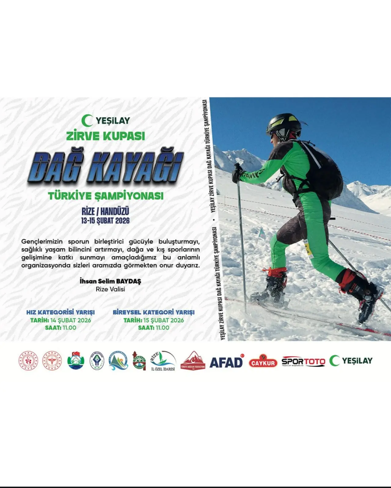 Yeşilay’ın sağlıklı yaşam vizyonu ile kış sporlarının heyecanı, Karadeniz’in zirvesinde buluşuyor. 13–15 Şubat 2026 tarihlerinde Rize Handüzü Yaylası, Yeşilay Zirve Kupası ve Dağ Kayağı Türkiye Şampiyonası’na ev sahipliği yapacak.