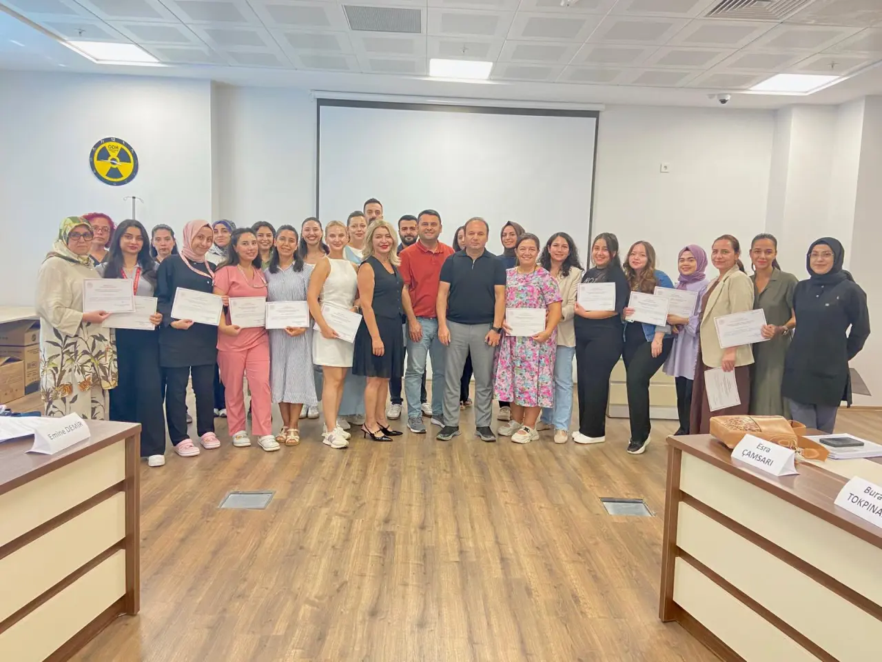 Eğitimin ardından düzenlenen sertifika törenine, Halk Sağlığı Hizmetleri Başkanı Dr. Bilgin Akoğul, NRP İl Kurs Sorumlusu Uzman Dr. Özgül Tunç Akbaş, Eğitimciler Dr. Mehmet Koca, Uzman Dr. İlkan Kayar, Hemşire Fatma Tekerek, Program Sorumlusu Leyla Ehliz ve kursiyerler katıldı.