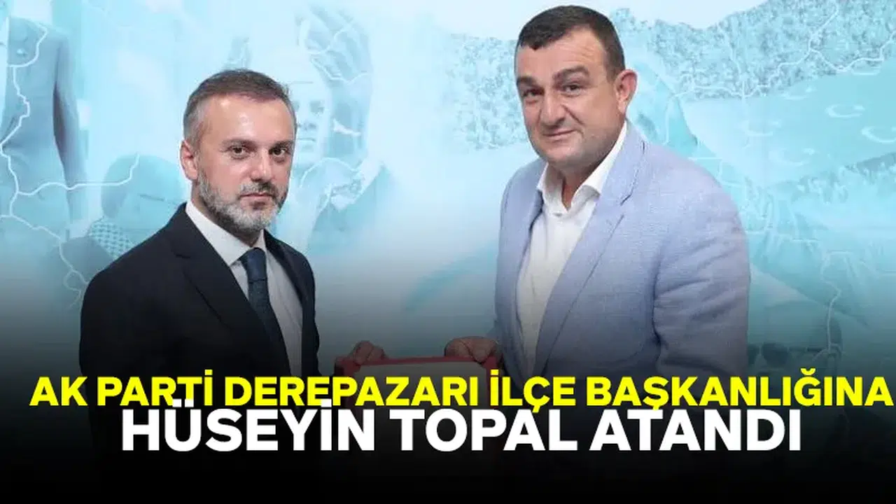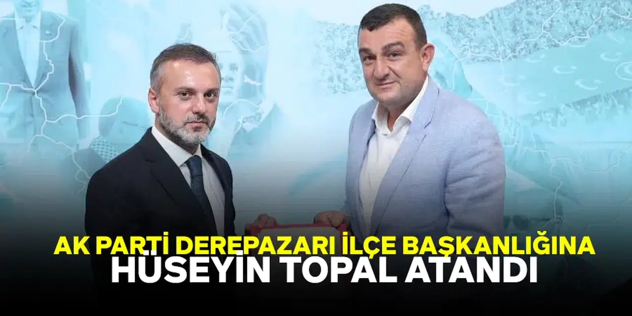 Ak Parti Rize İl Başkanlığı, Derepazarı ilçesindeki ilçe başkanlığı görevine Hüseyin Topal'ı atadığını duyurdu. Yaklaşan Belediye Seçimleri öncesi ilçe başkanlığı görevinden Belediye Başkanı adaylığı için ayrılan Erkan Köse'nin yerine gelen Hüseyin Topal, yeni görevine resmen başladı.