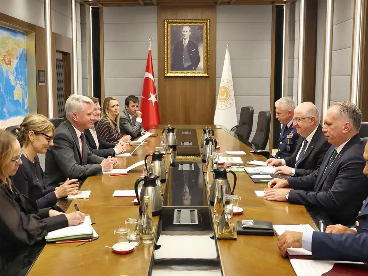 MİLLİ Savunma Bakanı Yaşar Güler, İngiltere Büyükelçisi Jill Morris ve savunma sanayi şirketi BAE Systems Genel Müdürü Charles Woodburn'u kabul etti.