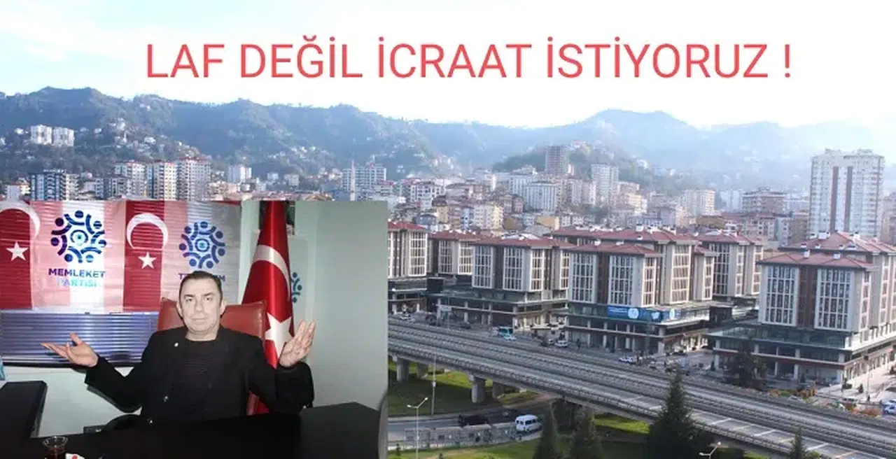 Bayrak sözlerine şöyle devam etti: “Ama anladığımız kadarıyla seçim yatırımıydı. Aradan bunca zaman geçmesine rağmen hiçbir çalışma yapılmadı. Hiçbir kaynak ve proje ortada yok. Kent merkezinde Rize’ye yakışmayan viyadük kalksın. Yerine yeni yollar yapılsın. Trafik rahatlasın. Rize’nin sahil tarafının önü açılsın. Bu viyadük insanların göz zevkini bozuyor. Acilen kaldırılmalı. Bir çalışma yapılsın istiyoruz. Konuşma değil, icraat bekliyoruz. Yeni bir proje üretilsin dedik. Hatta çözüm önerisi de sunduk. Dağdibi’nden yol yapılsın veya Trabzon’da olduğu gibi dal- çık projesi yapılsın. Trabzon bunu yaptı çokta güzel oldu. Bir an önce bu viyadükten kurtulmak istiyoruz. AK Partili siyasiler ‘kaldıracağız’ demişlerdi ama ortada proje yok. Laf değil icraat bekliyoruz.”