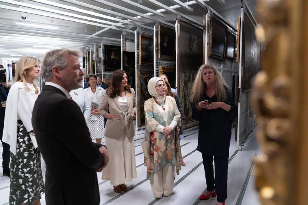 Burada, aile fotoğrafında yer alıp, rehberin anlatımıyla müzeyi gezen Erdoğan, programa katılan diğer lider eşleriyle diplomasi, eğitim, sağlık, kültür ve çevre alanlarında bilgi alışverişinde bulundu.