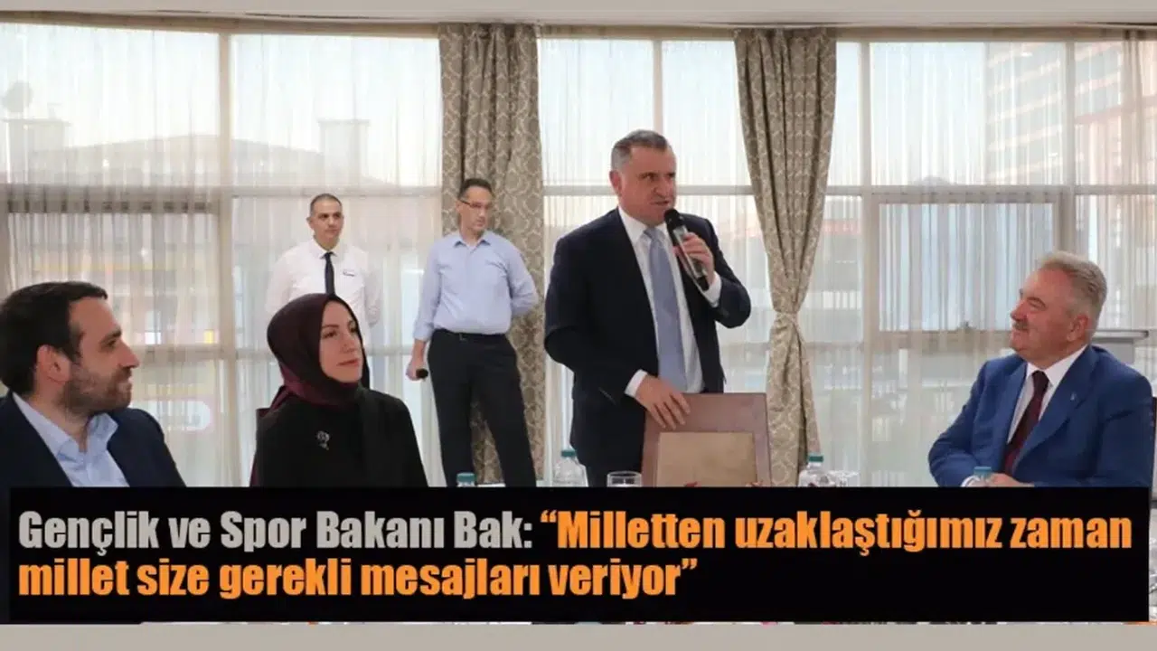 Bakan Bak her zaman Rize’nin emrinde olduğunu dile getirerek “Bizde her zaman Rize’nin emrindeyiz. "Rize’mize spor anlamında da önemli hizmetleri getirmeye devam ediyoruz ve devam edeceğiz. Belediyelerimizin projelerine destek veriyoruz. İnanıyoruz ki Belediyelerimizle, teşkilatımızla bir araya gelerek yapılan çalışmalarla Rize yeniden rekorlar kıracaktır. Milletvekili olduğum dönemlerden biliyorum bu teşkilat her zaman birincilikler yaşamıştır. Yine rekorlara imza atacaktır. O heyecanı o coşkusunu yakalayacak ve bu toprakların çocuğu Recep Tayyip Erdoğan’ın arkasında Kaçkar dağları gibi duracaktır.” dedi.