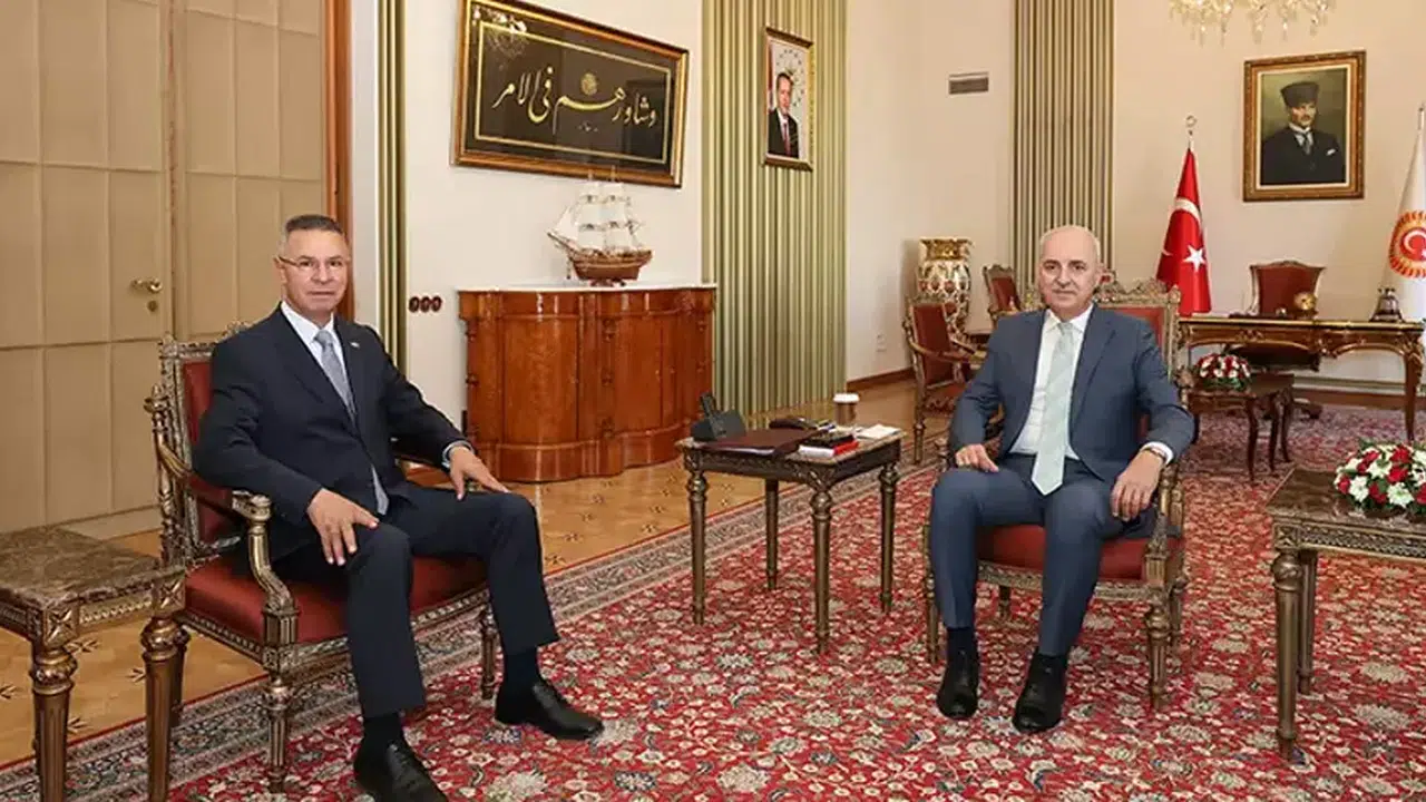 TBMM Başkanı Numan Kurtulmuş, Filistin'in Ankara Büyükelçisi Faed Mustafa'yı kabul etti. Ziyaret, TBMM'nin sosyal medya hesabından duyuruldu.