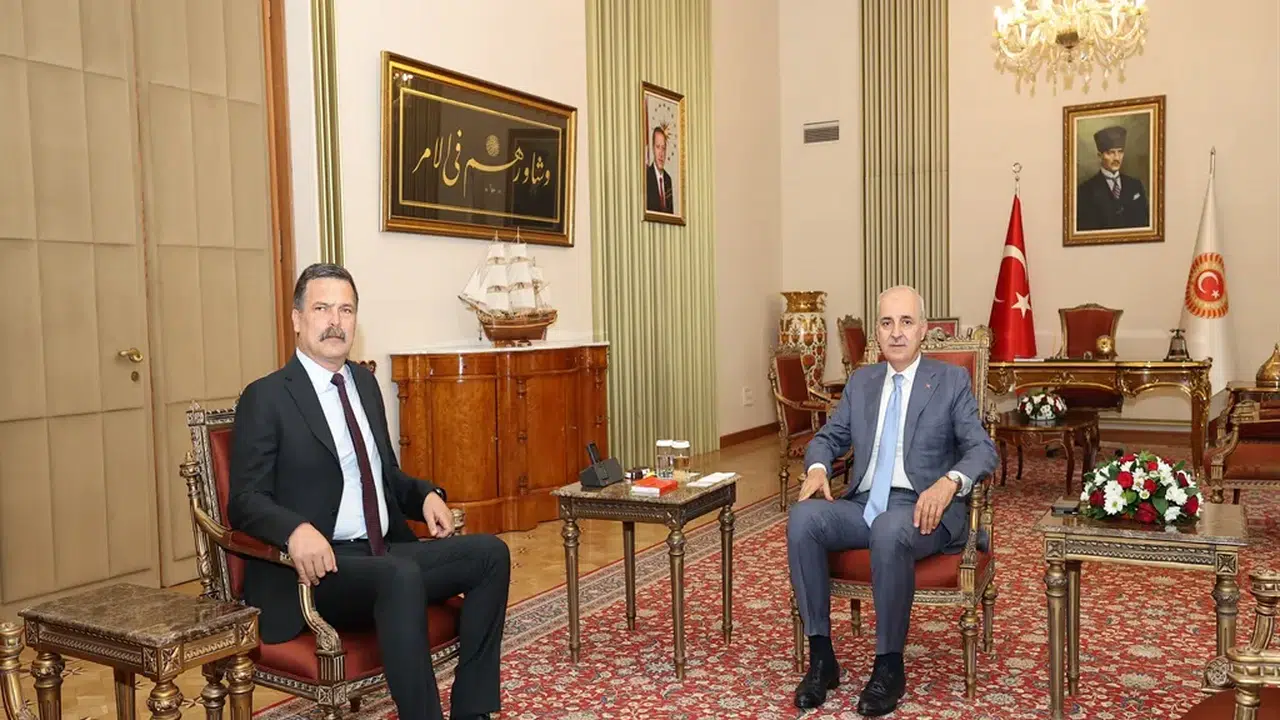 TBMM'nin sosyal medya hesabından yapılan açıklamada, "Türkiye Büyük Millet Meclisi Başkanımız Numan Kurtulmuş, Türkiye İşçi Partisi Genel Başkanı Erkan Baş’ı kabul etti" denildi.