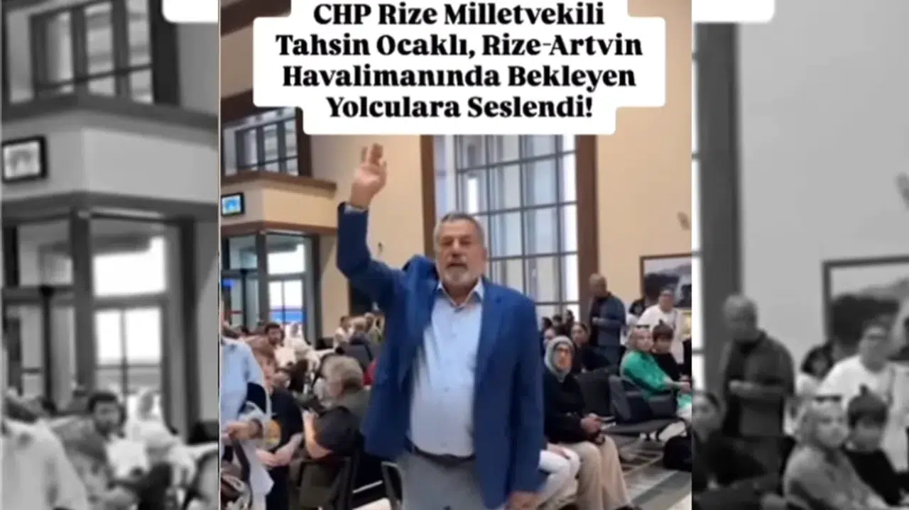 CHP Rize Milletvekili Tahsin Ocaklı, uçuş iptalleri ve rötarlarla sık sık gündeme gelen Rize-Artvin Havalimanı'nda, bekleme salonuna girerek yolculara yüksek sesle seslendi. Ocaklı, aylardır yaşanan sorunlara dikkat çekerek, yolcuların mağduriyetini vurguladı.