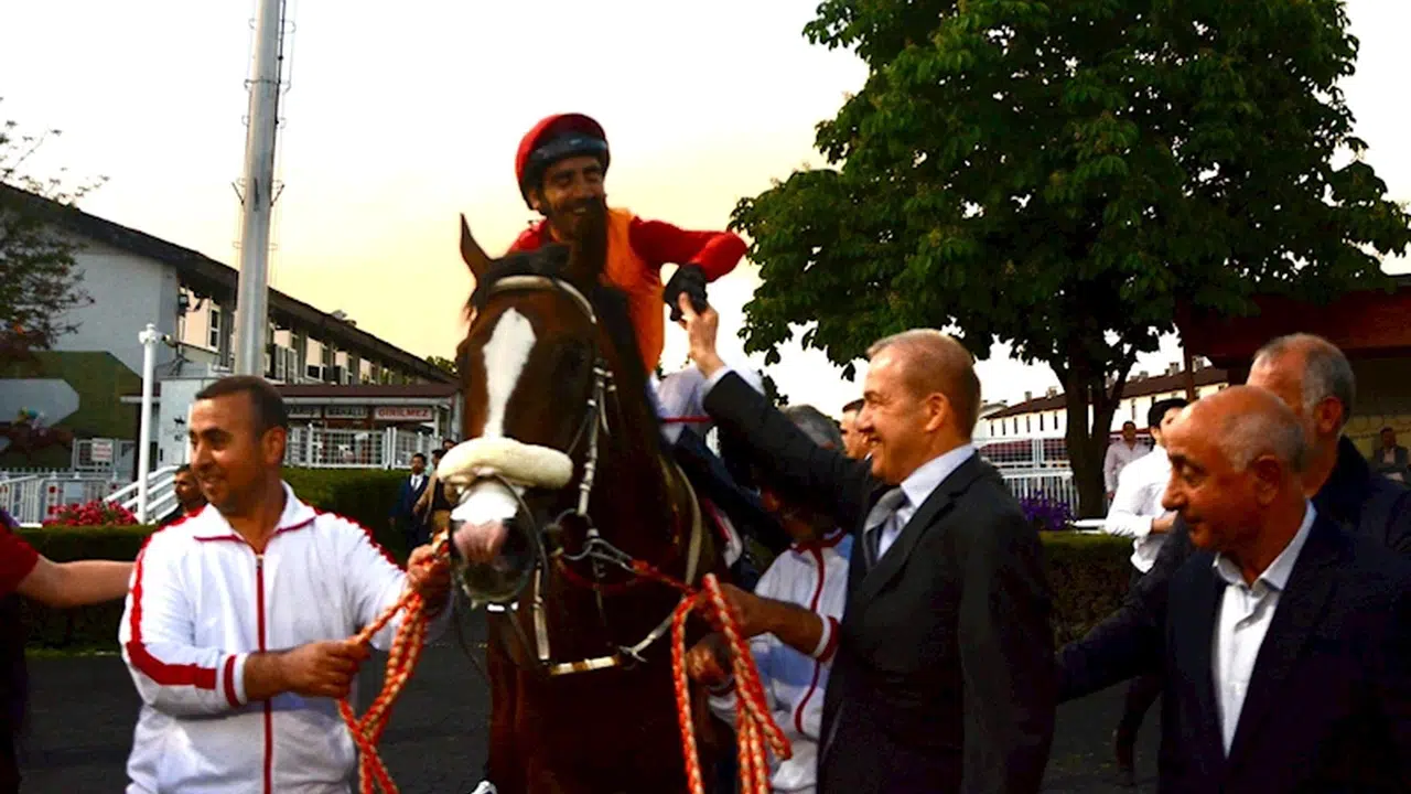 Sacit GÖNCÜ / İSTANBUL, (DHA)- Türkiye Jokey Kulübü (TJK) tarafından 19 Mayıs 1919 tarihinin anısına düzenlenen 19 Mayıs Koşusu’nu Galatasaray’ın eski yöneticisi Necati Demirkol’un sahibi olduğu Vincitore Jokeyi Selim Kaya idaresinde kazandı. Aynı zamanda Jokey Selim Kaya, koşuyu Galatasaray’ın efsane ismi Metin Oktay’ın forması ile tamamladı.