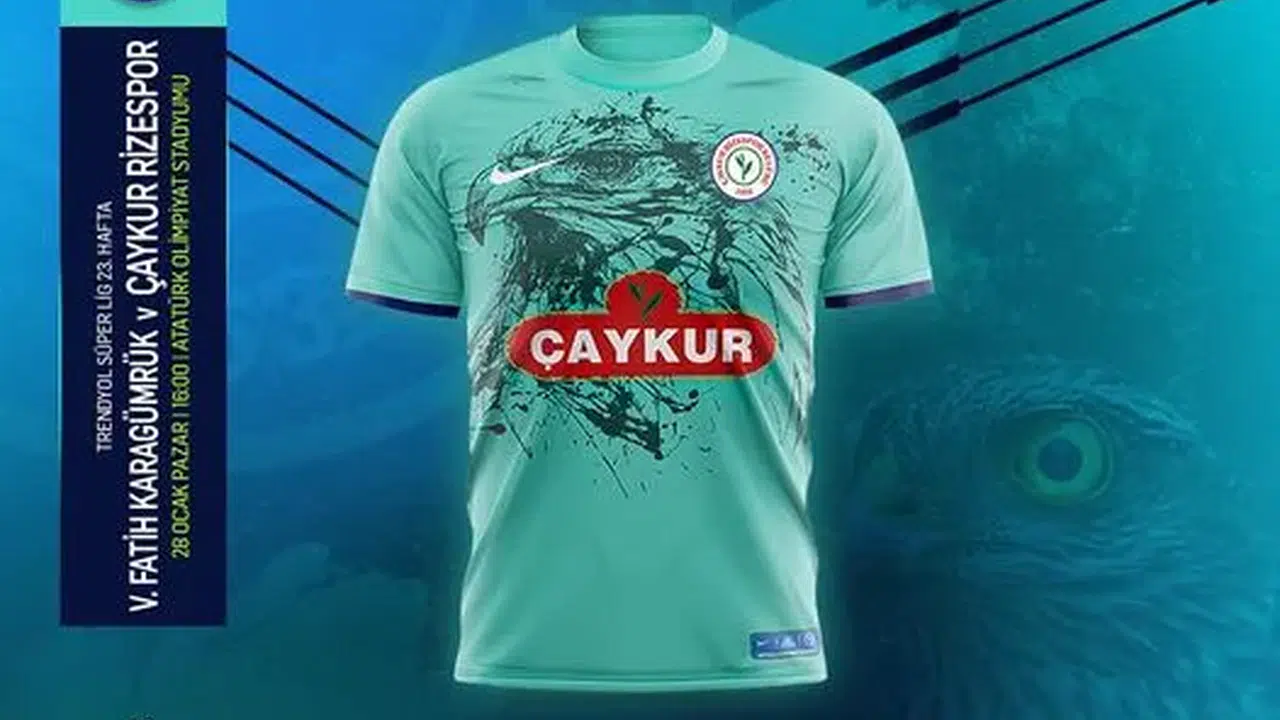 Çaykur Rizespor, Vavacars Fatih Karagümrük ile oynayacağı maçta özel tasarım Atmacalı Turkuaz forma ile sahaya çıkacak. 2023-2024 sezonunda Nike tarafından tasarlanan bu forma, turkuaz rengin asaletini ve atmacanın gücünü bir aray
