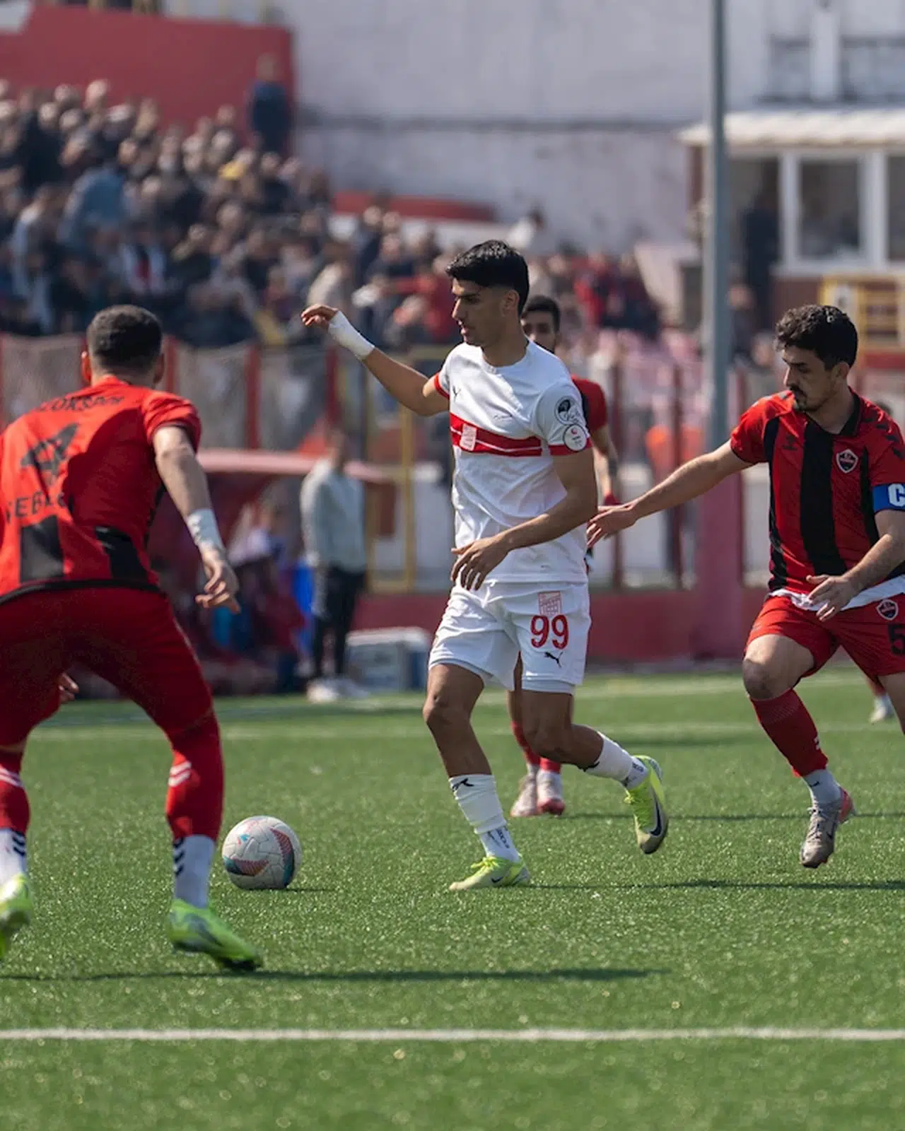 AYVALIK, (DHA)- 3'üncü Lig 3'üncü Grup'ta son 6 maçında 5 galibiyet, 1 beraberlik alarak 3 puan geriden zirve takibini sürdüren Ayvalıkgücü Belediyespor'da genç santrfor Ali Habeşoğlu bu sezon sergilediği performansla tüm dikkatleri üzerine çekti. Kırmızı-beyazlı ekibin son olarak iç sahada 4-3 kazandığı Yozgat Belediyesi Bozokspor maçında hat-trick yaparak toplamda 13 gole ulaşan 20 yaşındaki milli futbolcu, grupta gol krallığı yarışında Pazarsporlu Mustafa Sol ile birlikte zirveye yerleşti.