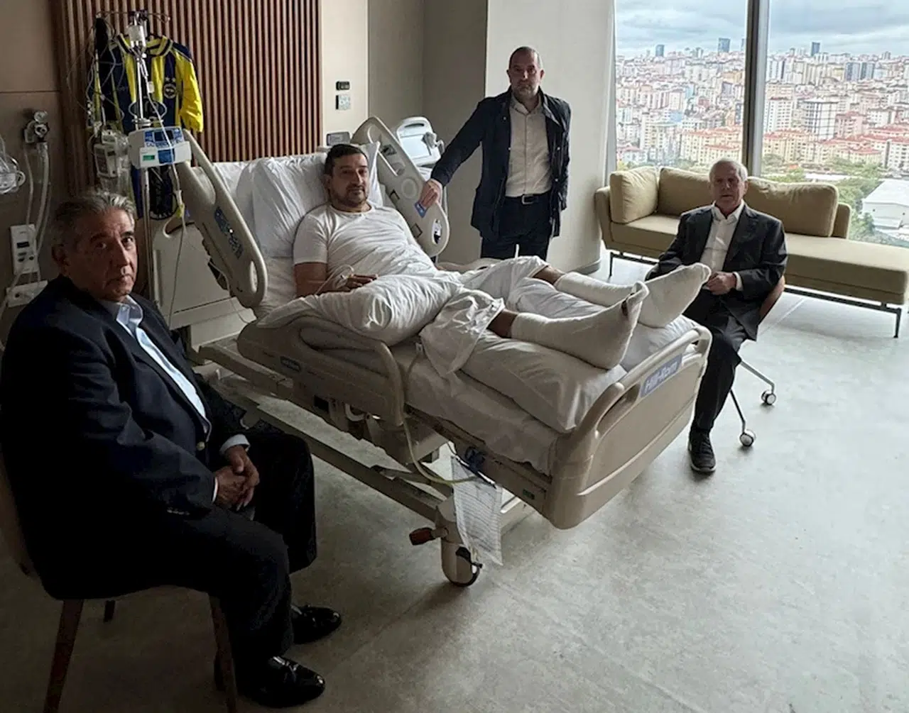 Paylaşılan fotoğrafta Serhat Akın'ın iki bacağının da sarılı olduğu ve baş ucunda futbol oynadığı yıllardan Fenerbahçe formasının bulunduğu görüldü.