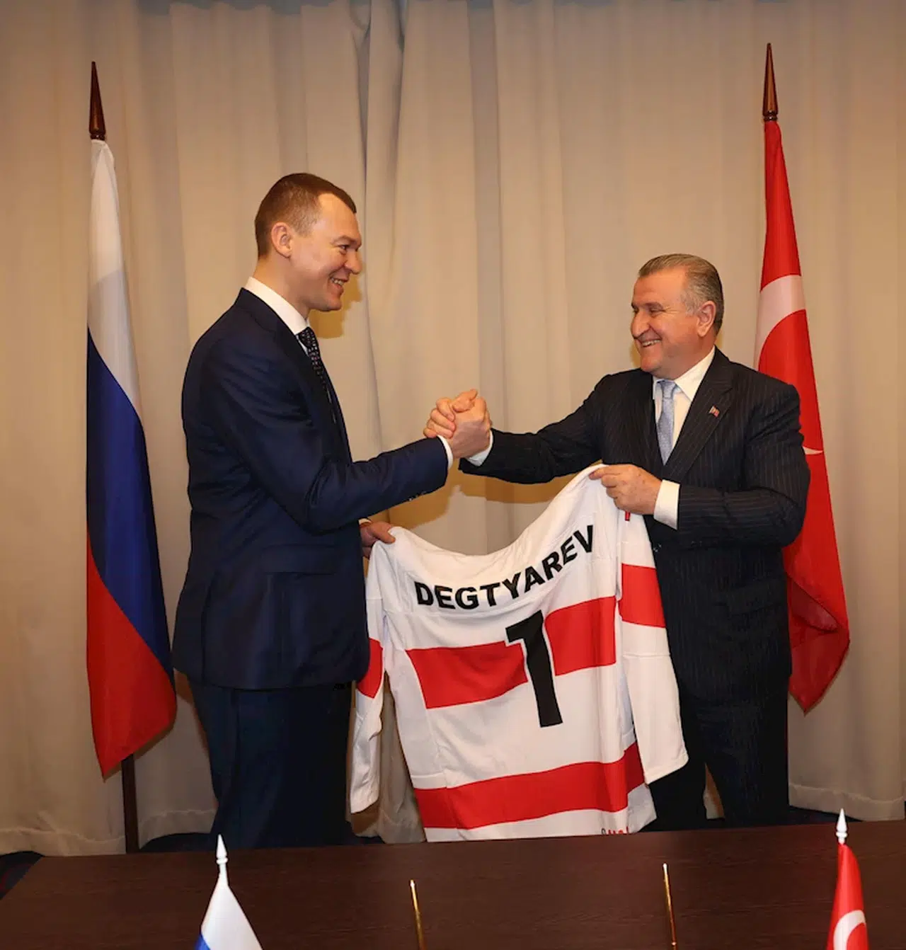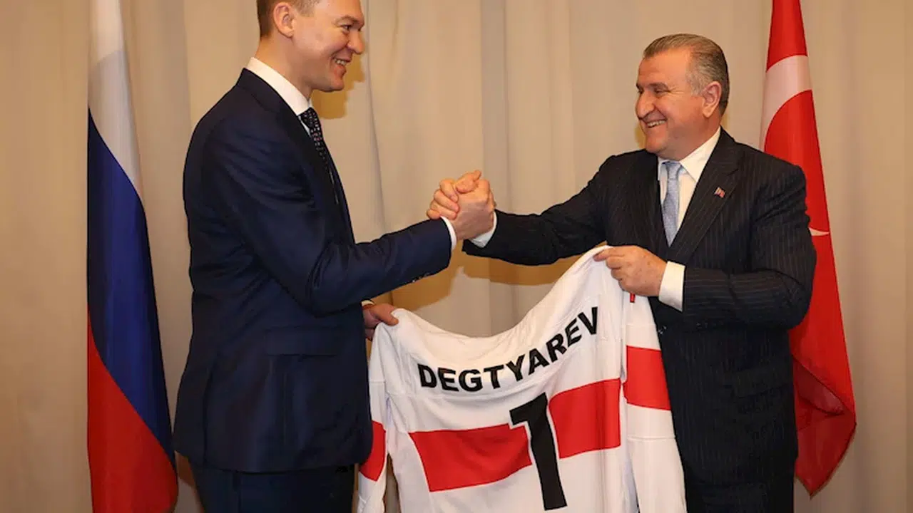 ‘Geleneksel Sporların İhyası’ temasıyla Rusya Federasyonu’nun St. Petersburg şehrinde yapılan 7’nci Etnospor Forumu’na katılan Gençlik ve Spor Bakanı Osman Aşkın Bak, Üst Düzey Bakanlar Paneli’nin ardından mevkidaşlarıyla ikili görüşmelerde bulundu. Bakan Bak, ilk olarak Rusya Federasyonu Spor Bakanı Michael Degtyarev ile bir araya geldi. Görüşmede, beden eğitimi ve spor alanında Türkiye ve Rusya arasındaki ilişkilerin güncel durumu ele alındı. Gelecek yıllarda ilişkilerin geliştirilmesine yönelik, bilim ve araştırma alanında işbirliği, ortak eğitim faaliyetleri, spor eğitim kuruluşları arasında işbirliğinin geliştirilmesi ve ortak kamplar gibi birçok konuda yapılabilecek çalışmalar değerlendirildi. Görüşmede bulunan Rusya Buz Hokeyi Federasyonu yetkilileri, Türkiye Buz Hokeyi Federasyonu ile hayata geçirdikleri ortak projeleri anlatarak Türkiye’de çok iyi bir noktaya gelen buz hokeyi sporunun daha da ileriye taşınması için desteklerini sürdüreceklerini ifade ettiler.