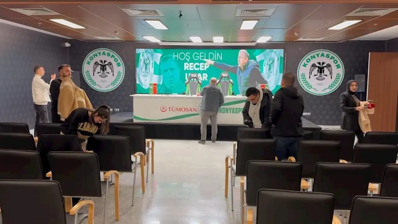 Geçtiğimiz pazar günü Gaziantep FK'ya 3-1 mağlup olmasının ardından pazartesi günü toplantı yapan Konyaspor yönetimi, Ali Çamdalı ile yollarını ayırma kararı almasının ardından takımın başına en son Kayserispor'da yaklaşık 4 ay görev yapan Recep Uçar ile 2 yıllığına anlaştığını duyurdu. Konyaspor yönetimi yeni teknik direktör Recep Uçar ile imzalayacağı sözleşme için bugün saat 13.00'te basın toplantısı düzenledi. Düzenlenen toplantıya teknik hoca ve yönetim ekibi 40 dakika boyunca gelmeyince, toplantının başlamasının da bir süre daha uzayacağı açıklanınca basın mensupları protesto ederek toplantı salonundan ayrıldı. (DHA)
