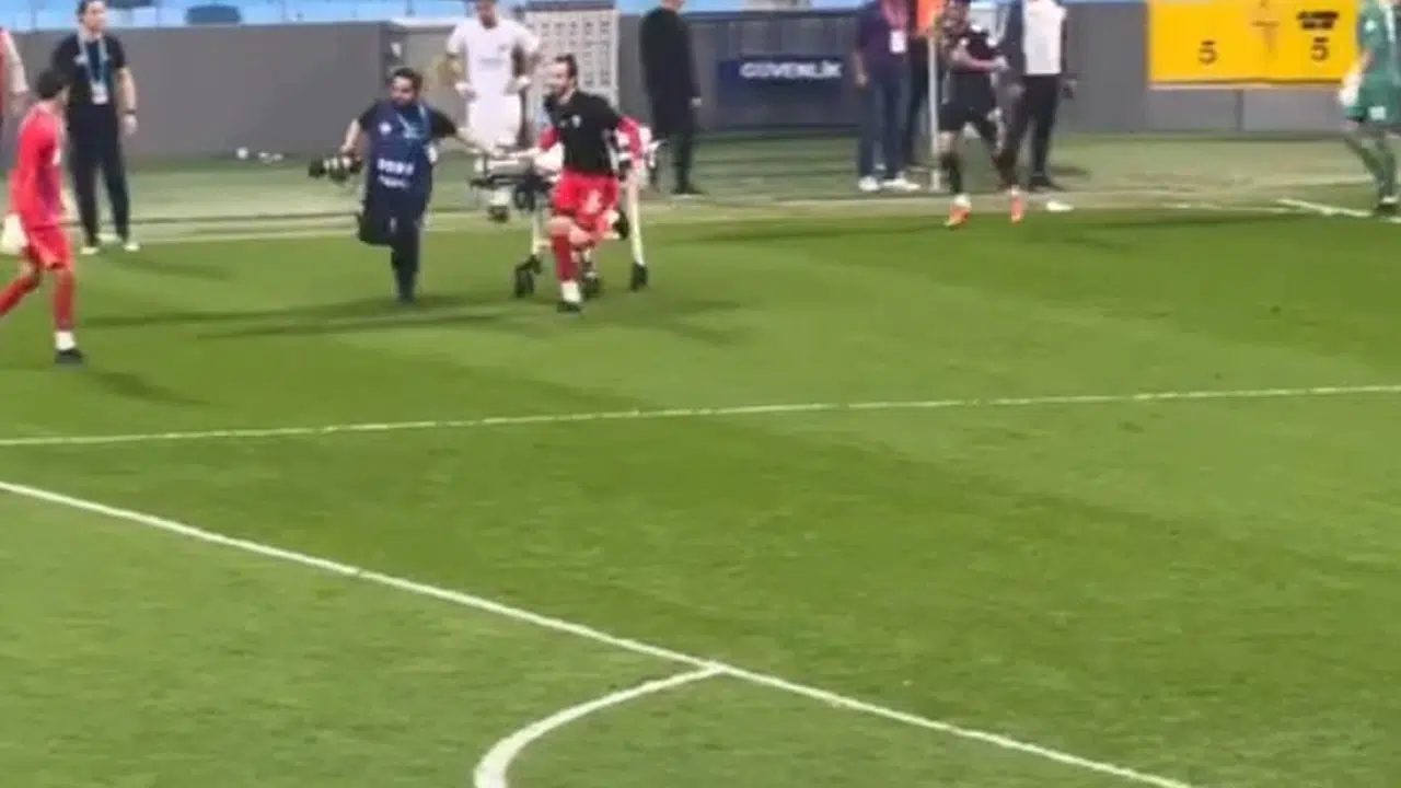 Baygınlık geçiren futbolcuya sedyeyi kulüp personeli taşıdı