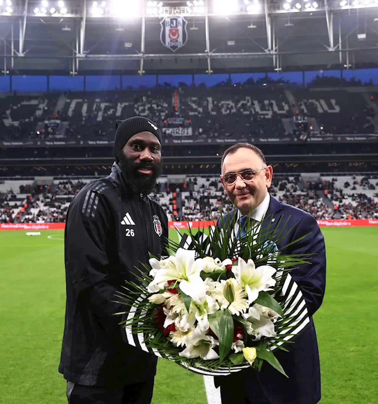Beşiktaş’ın Demokratik Kongolu sol beki Arthur Masuaku, Göztepe ile oynanan kupa maçında siyah-beyazlı formayı 100’üncü kez giydi. Karşılaşma öncesinde Beşiktaş Asbaşkan Murat Kılıç, tecrübeli sol beke plaket verdi. 31 yaşındaki Arthur Masuaku, siyah-beyazlı formayla 99 maçta 3 gol, 16 asist yaptı.