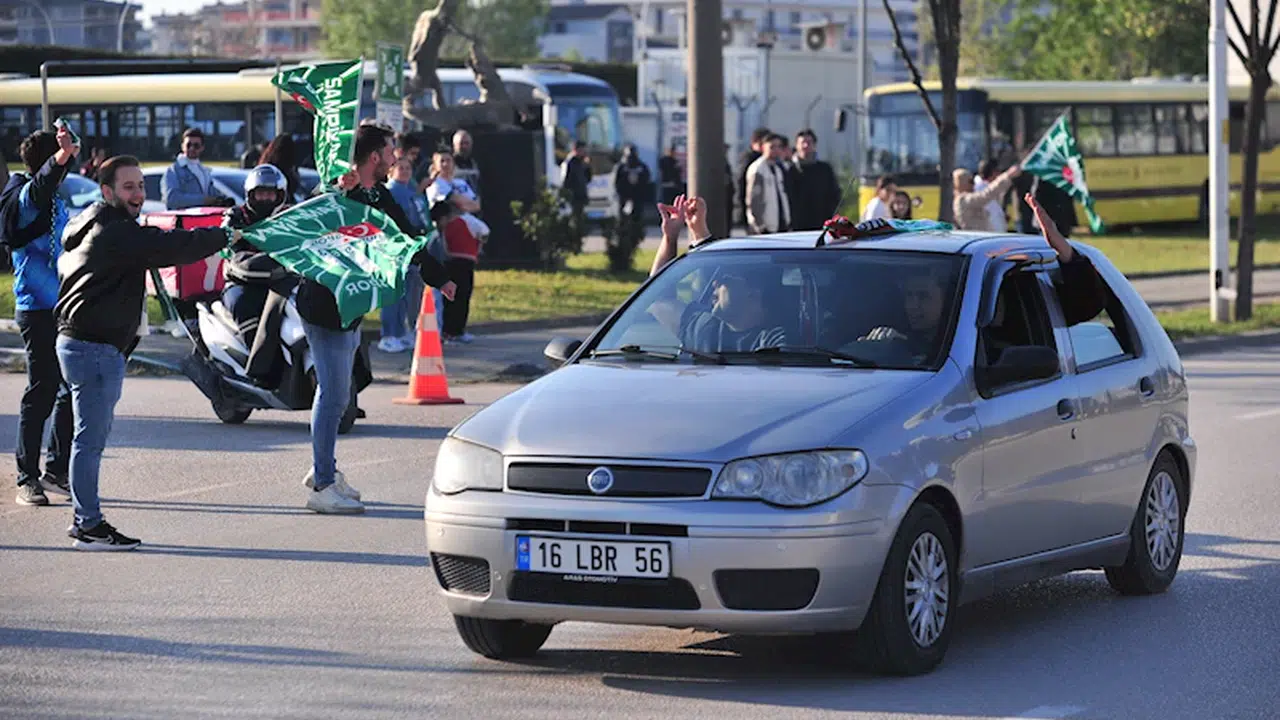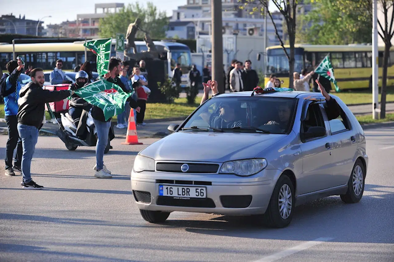 Bursasporlu taraftarlar, şampiyonluğu coşkuyla kutladı