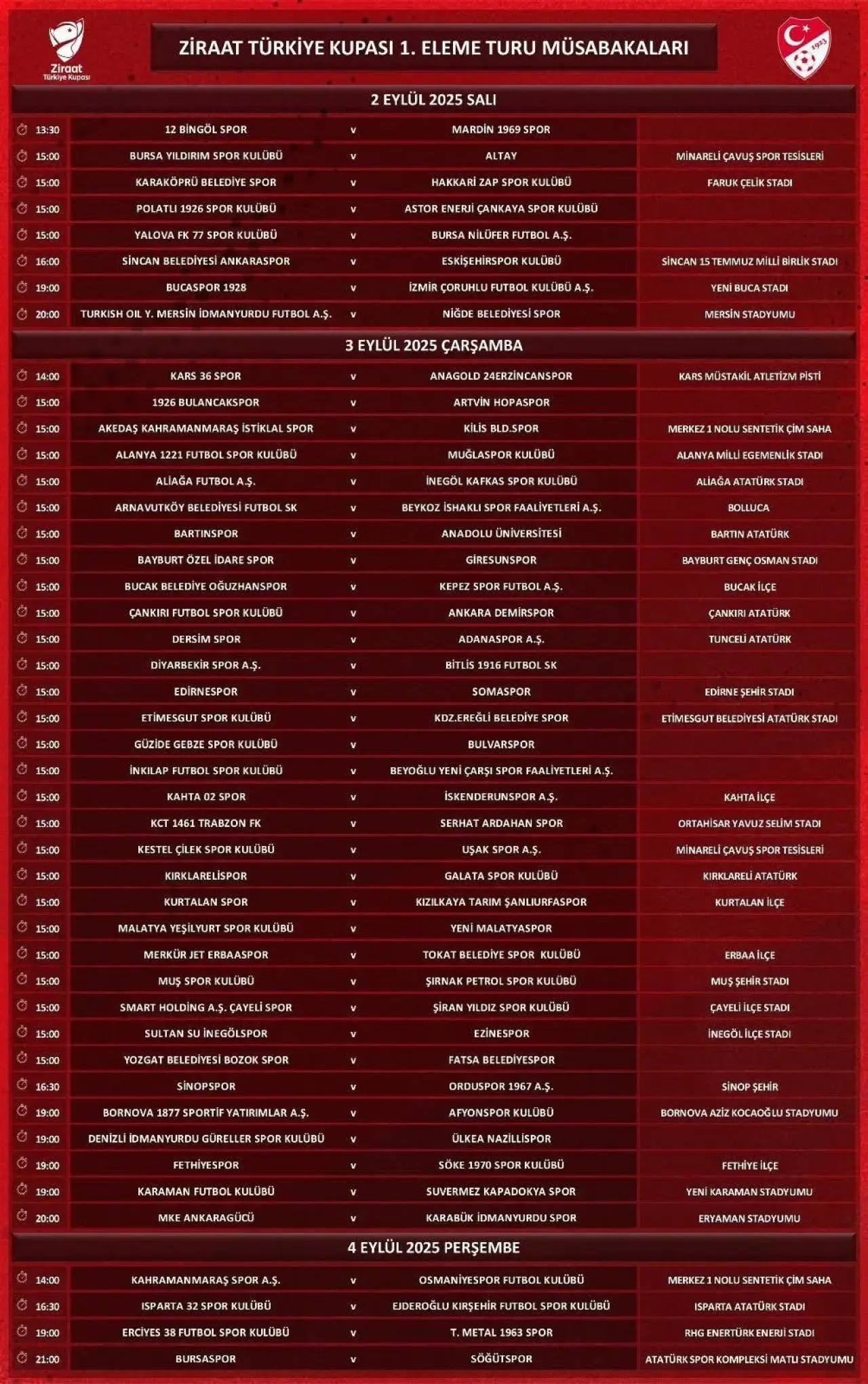 Türkiye Futbol Federasyonu (TFF), kupa heyecanının başlayacağı 2-3-4 Eylül tarihli programı resmen duyurdu. Buna göre, Çayelispor ile Şiran Yıldızspor arasındaki mücadele 3 Eylül Çarşamba günü saat 15.00’te Çayeli İlçe Stadı’nda oynanacak.