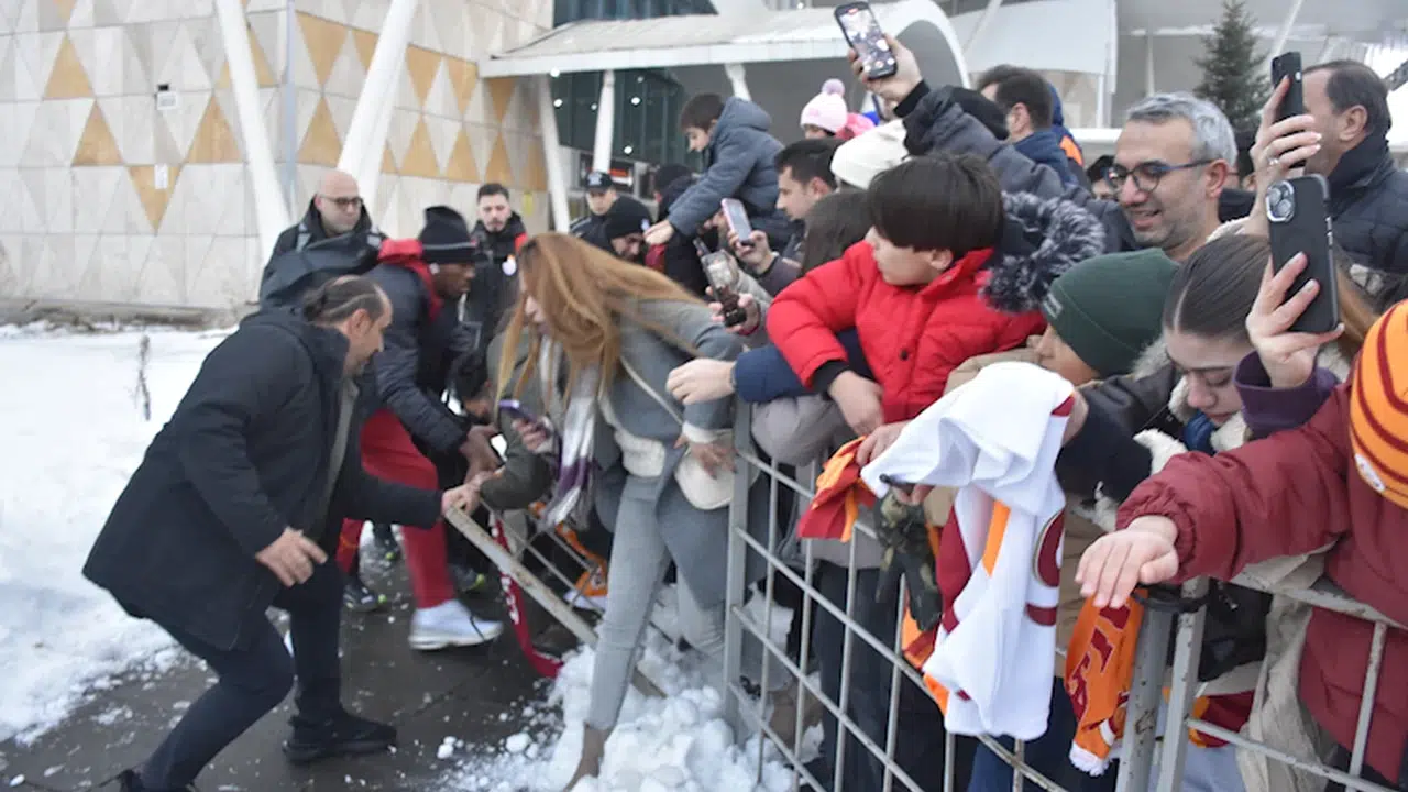 Özel uçakla Sivas Nuri Demirağ Havalimanı'na gelen sarı-kırmızılı kafileyi, bir grup taraftar karşıladı. Taraftarlar, çiçek verdikleri teknik direktör Okan Buruk ve futbolcularla fotoğraf çektirdi. Bazı taraftarlar meşale yakarak takımlarına sevgi gösterisinde bulundu. Sarı kırmızılı takımın yıldız futbolcusu Victor Osimhen’e sevgi gösterisinde bulunmak isteyen taraftarların hamle yapması sonucu koruma bariyerleri Osimhen’in üzerine doğru devrildi. Son anda polisler bariyerin Osimhen’in ayağına düşmesini engelledi. Galatasaray takımı, daha sonra otobüsle konaklayacağı otele geçti. (DHA)