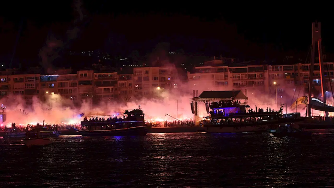 Ergin KARATAŞ / İZMİR, (DHA)- Süper Lig'e geri dönen İzmir'in köklü temsilcisi Göztepe kuruluşunun 99'uncu yıl dönümünü eşi görülmemiş bir organizasyonla kutladı. Sarı-kırmızılı renklere gönül veren binlerce taraftar saatlerin 19.25’i göstermesiyle birlikte Güzelyalı Sahili'nde toplanmaya başladı. Sahil hattına dev ekranlar kuruldu. Saat 20.30'dan itibaren başlayan DJ ve ışık şovları kutlamaların ateşini yaktı. Saat 22.00'de ise sahil hattı boyunca toplanan binlerce Göztepeli, aynı anda geleneksel hale getirilen meşale şov yaptı. Sahil boyunca yan yana dizilen Göztepeliler, ellerindeki meşaleleri saat 22.00'de aynı anda ateşlerken, yüzlerce işaret fişeği de geceyi aydınlattı. Meşale şovun ardından başlayan havai fişek gösterileri dakikalarca sürdü.