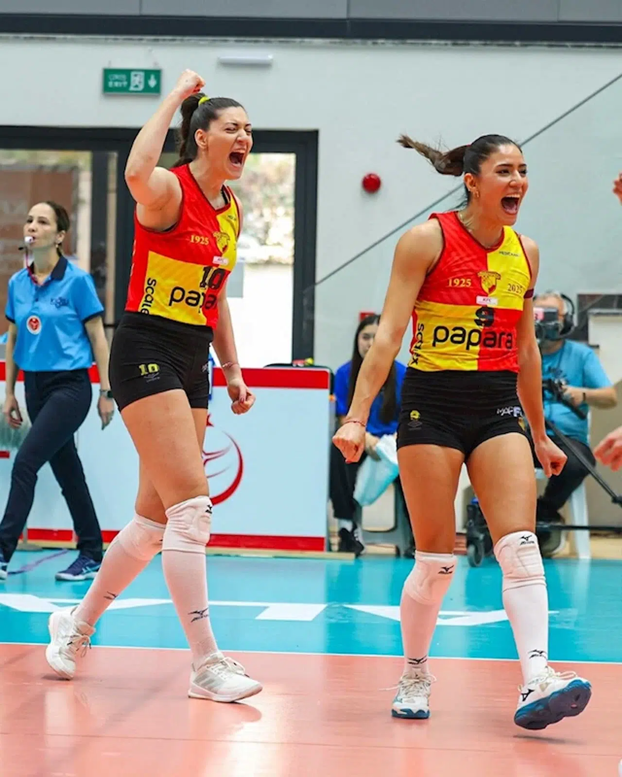 Mustafa KÖPRÜLÜ / İZMİR, (DHA)- KADINLAR Voleybol 1'inci Ligi A Grubu'nda normal sezonu liderlik koltuğunda tamamladıktan sonra Play-Off yarı finalde çıktığı ilk 2 maçı kazanan Papara Göztepe adını Final Etabı'na erken yazdırmanın sevincini yaşıyor. Alanya'da oynanan yarı final müsabakalarında Bozüyük Belediyesi Eğitimspor'u 3-1, Bolu Belediyespor'u 3-0 mağlup eden sarı-kırmızılı takım, 1 maç kala finali garantiledi.