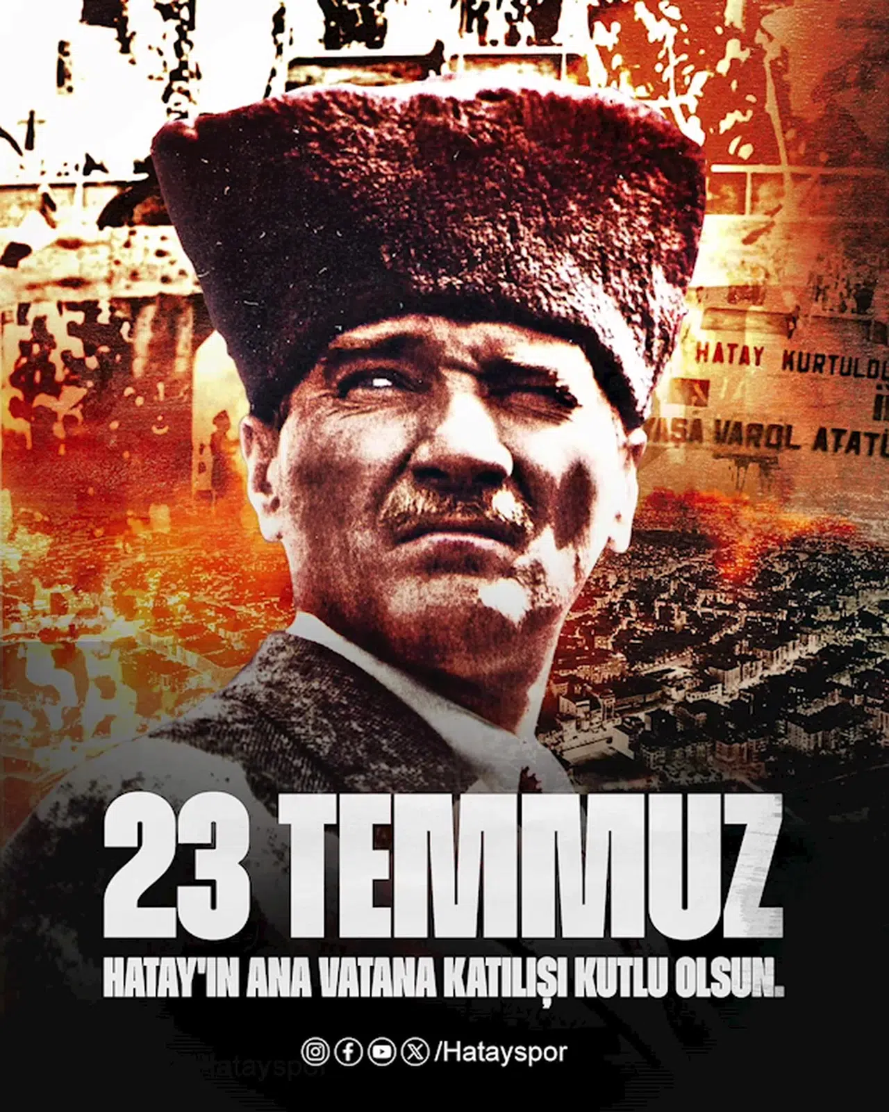 Samim SELÇUK/ HATAY, (DHA)- SÜPER Lig ekiplerinden Hatayspor Kulübü, Hatay’ın ana vatana katılışının 85'inci yıl dönümünü, yayınladığı mesajla kutladı.