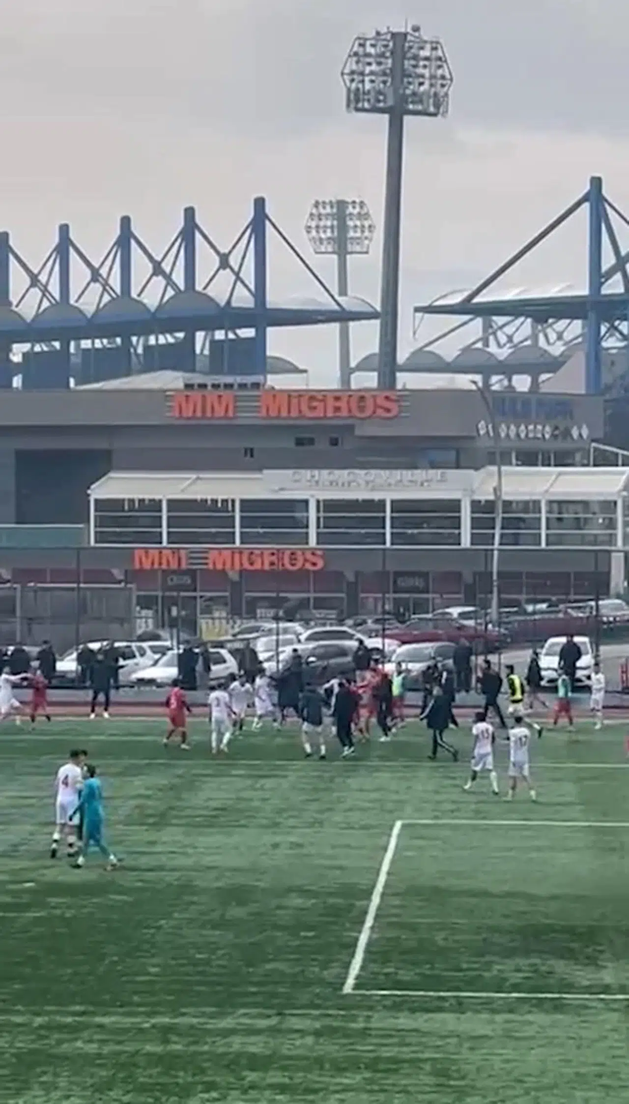 Karabük’te Onur Sahası’nda bugün oynanan U19 Bölgesel Gelişim Ligi mücadelesinde Karabük İdman Yurdu U19 ile Kırıkkale FK Spor U19 takımları karşı karşıya geldi. Kırıkkale FK Spor U19'un 3-2 önde olduğu maçın son dakikalarında sahada 2 takım futbolcuları arasında gerginlik yaşandı. Maçın 84'üncü dakikasında Karabük İdman Yurdu oyuncusu Arda Yazıcıoğlu, hakem Elif Nur Tufan tarafından kırmızı kartla oyun dışı bırakıldı. Yazıcıoğlu'nun soyunma odasına gittiği sırada saha içinde futbolcular arasında kavga çıktı. Olaylara polis ekipleri müdahale etti. Yaşanan arbede sırasında yaralanan Karabük İdman Yurdu U19 oyuncusu Arda Yazıcıoğlu, Karabük Eğitim ve Araştırma Hastanesi’ne kaldırılarak tedavi altına alındı. Olayla ilgili inceleme başlatıldı. (DHA)