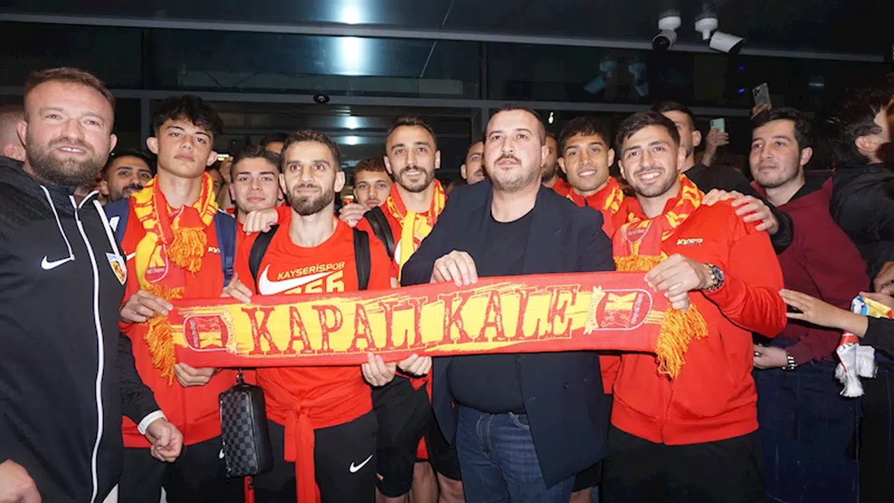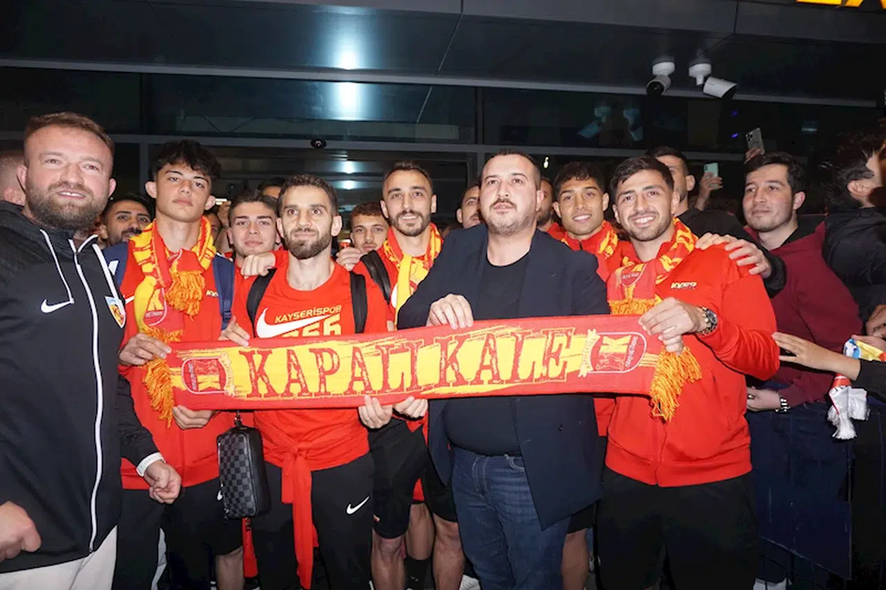 Kayserispor, Süper Ligin 32’nci haftasında İstanbul’da Fenerbahçe ile karşılaştı. Zorlu müsabakadan 3-3 berabere ayrılarak şampiyonluk yolunda rakibine büyük bir darbe vuran sarı-kırmızılı takım, havayolu ile Kayseri’ye geldi. Saat 00.45 sıralarında Kayseri’ye inen futbolcuları çok sayıda taraftar, meşale ve tezahüratlerle karşıladı. Kayserispor kaptanı Gökhan Sazdağı futbolculara sevgi gösterisinde bulunan taraftarlara 3’lü çektirdi. Futbolcuları taşıyan otobüs daha sonra kulüp tesislerine hareket etti. (DHA)