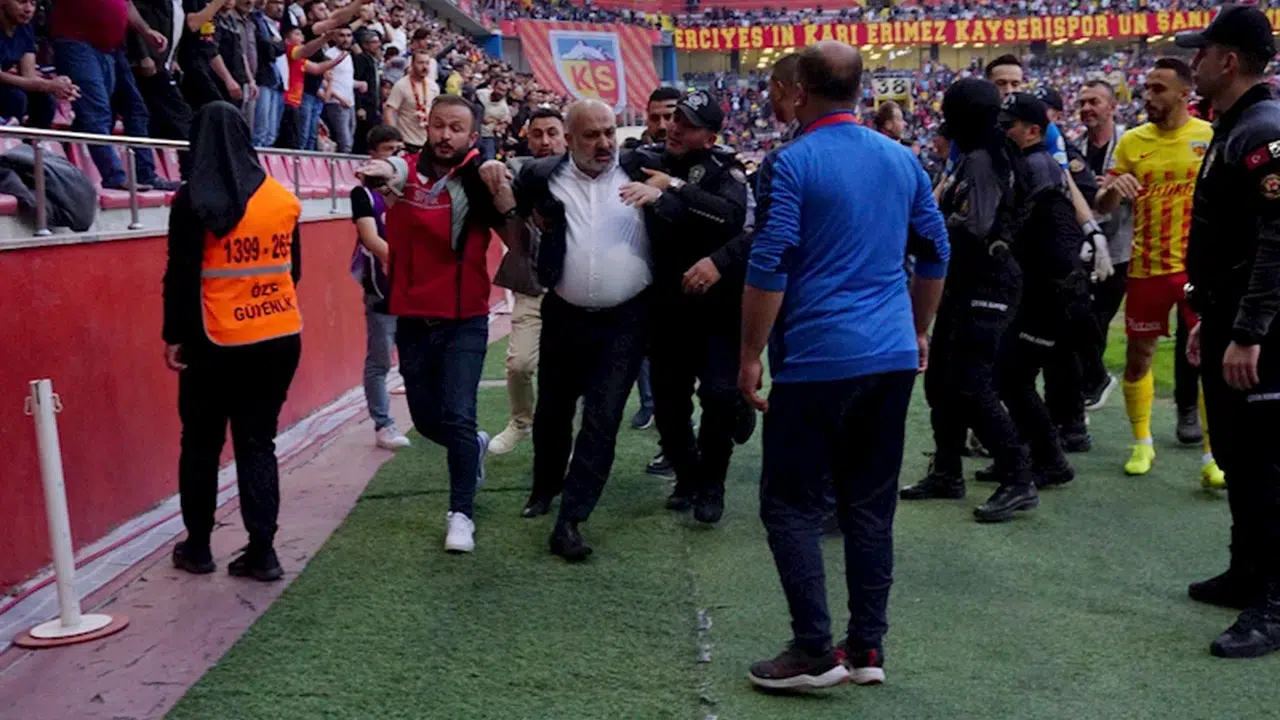 Süper Lig’in 37’nci haftasında sahasında Konyaspor ile karşılaşan Kayserispor’da sarı-kırmızılı takımın forvet oyuncusu Nazon, 17’nci dakikada rakibinin karnına yumruk attığı gerekçesiyle kırmızı kart gördü. Başkan Ali Çamlı hakem Halil Umut Meler'in kararına sinirlenerek saha kenarına indi. Başkan Ali Çamlı’nın sahaya girmesi güçlükle engellenirken teknik sorumlu Burak Yılmaz da hakemlere tepki gösterdi. Yaklaşık 9 dakika duran maç ortam sakinleşince yeniden başladı.