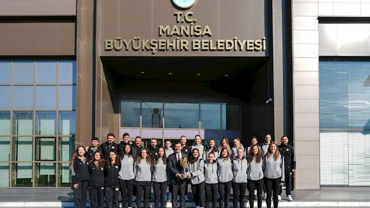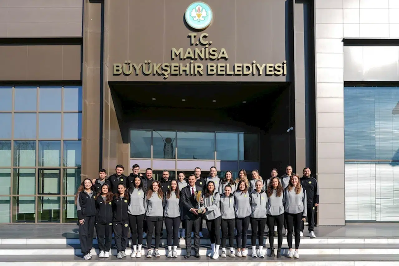 MANİSA, (DHA)- MANİSA Büyükşehir Belediyespor Kulübü Kadın Voleybol Takımı, Kadınlar 1'inci Ligi'ne yükselerek büyük bir başarıya imza attı. Şampiyon ekip, zaferin ardından kupayla Manisa Büyükşehir Belediye Başkanı Ferdi Zeyrek'i ziyaret etti. Voleybol Kadınlar 2'nci Ligi'ni ilk sırada tamamlayarak final müsabakalarını oynamaya hak kazanan Manisa Büyükşehir Belediyespor'da çeyrek final ve yarı final gruplarını ilk sırada tamamlayan voleybolcular, final grubunda ikinci oldu. Kadınlar 1'inci Ligi'ne çıkmaya hak kazanan siyah-beyazlı ekip, kupayla birlikte Manisa Büyükşehir Belediye Başkanı Ferdi Zeyrek'i ziyaret etti. Kulüp Başkanı Emre Hasgör, Asbaşkan Ersin Öztaş, Voleybol Şube Başkanı Murat Kümüştekin, yönetim kurulu üyeleri Nabi Başbay, Atınç Aksoy ve Alper Ayan, Kulüp Genel Müdürü Alparslan Kaya, Başantrenör Caner Doğançay, teknik ekip ile sporcular, Başkan Ferdi Zeyrek'e destekleri nedeniyle teşekkür etti.