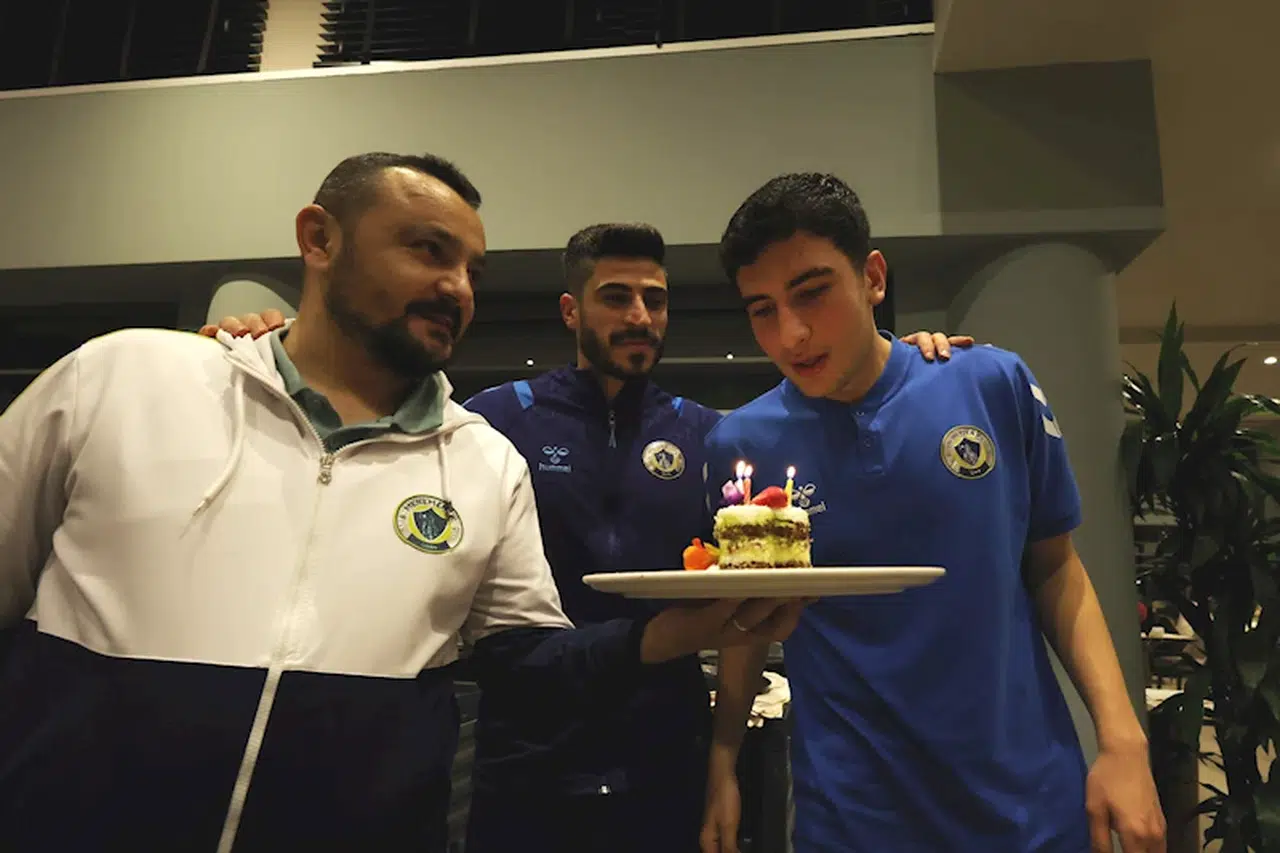 İZMİR, (DHA) - İZMİR'in TFF 2'nci Lig Kırmızı Grup'taki temsilcisi Menemen Futbol Kulübü, futbolculardan Burak Tolunay Sekin'in 19'uncu doğum gününü Antalya kampında kutladı. Burak için kampta Başkan Bilgin Tokul ve tüm takımın katılımıyla doğum günü pastası kesildi.