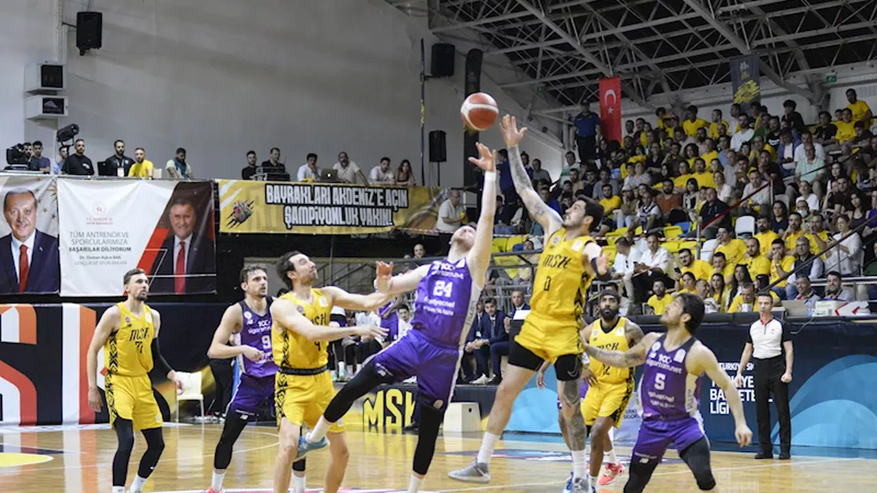 Türkiye Basketbol Ligi play-off final serisi üçüncü maçında Mersin Büyükşehir Belediyesi, Sigortam Net’i 85-64 yenerek seride durumu 2-1’e getirdi. (DHA)