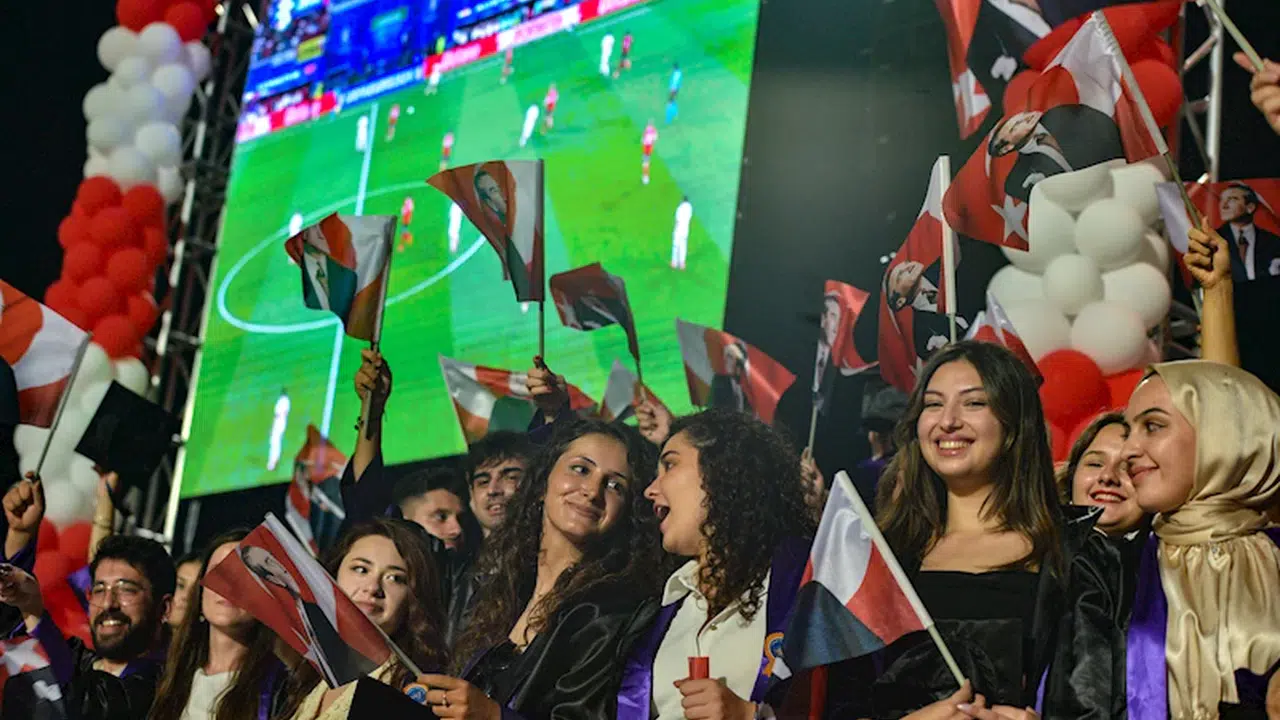 Akdeniz Üniversitesi'nin 2023-2024 eğitim öğretim yılı mezuniyet töreni üniversite stadyumunda yapıldı. Törende başarılı öğrencilere plaketin verildiği anlarda, stattaki ekranlardan A Milli Futbol Takımı'nın Avrupa Şampiyonası'nda karşılaştığı Avusturya maçı yayınlandı. Törendeki öğrenciler stadyumun çimlerinde, velileri de tribünden maçı izledi. Öğrenci ve veliler yaklaşık 20 bin kişi maç izlerken, mezuniyet gururu ile milli maç heyecanını bir arada yaşandı. Türkiye'nin maçın ilk dakikalarında attığı golün ardından stattaki öğrenciler büyük coşku yaşadı. Başarı belgesi alan öğrenciler, kep, cüppe ve ellerinde diplomayla tezahürat yaparak milli takımı destekledi. Bazı öğrenciler ellerindeki bayraklarla milli takımı destekledi.