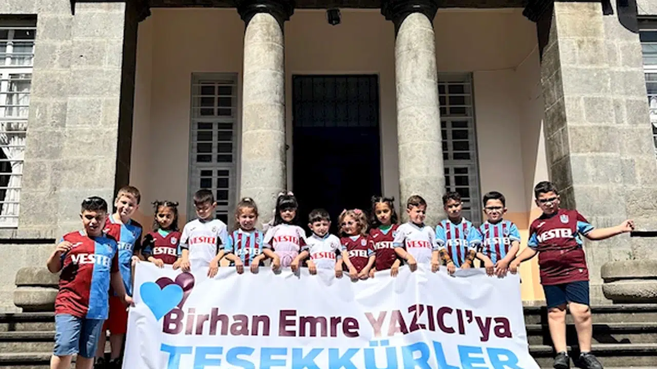 TRABZON,(DHA)- Trabzonspor Yönetim Kurulu Üyesi Birhan Emre Yazıcı, ana sınıfı ve özel eğitim sınıflarındaki bordo-mavili öğrencilere Trabzonspor forması hediye edip, bayramlarını kutladı.