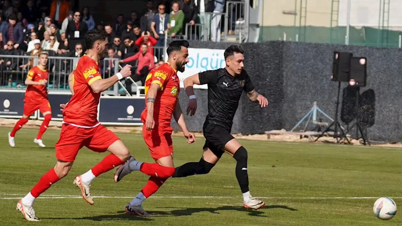 MUĞLA, (DHA)- 3'üncü Lig 2'nci Grup'ta zirve hesapları yapan Muğlaspor evindeki Ege derbisinde son dönemin formda takımı Tire 2021 FK'yı tek golle yenip yoluna devam etti: 1-0. Muğla Atatürk Stadı'ndaki karşılaşmanın tek golü 62'nci dakikada Sırat Yeşilördek'ten geldi. Tire'de 90+6'ncı dakikada Mertcan ikinci sarıdan kırmızı kart gördü. Muğlaspor bu sonuçla 33 puanla üçüncü sıradaki yerini koruyup lider Balıkesirspor'la arasındaki puan farkını 5'ten 3'e düşürdü. 8 maçlık yenilmezlik serisi son bulan Tire ekibi ise 21 puanda kaldı.