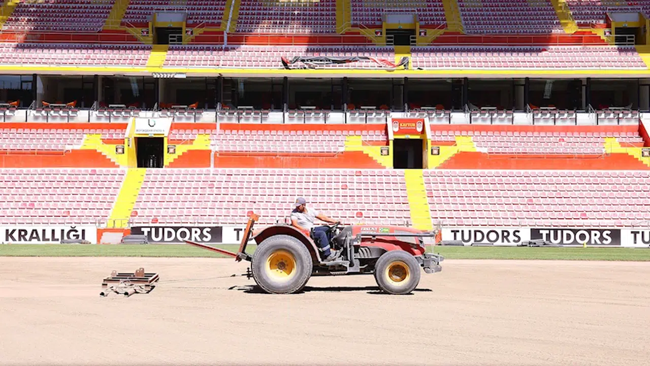 Büyükşehir Belediyesi ekipleri tarafından yeni sezon hazırlıkları kapsamında Kayserispor’un maçlarını oynadığı RHG Enertürk Enerji Stadyumu’nda UEFA ve FIFA standartlarına uygun çim serimi işlemlerine başlandı. Çalışmalar kapsamında saha sıyırma işlemleri ile başlanarak mevcut kotun 25 santimetre altına inilen bu işlem bir hafta devam etti. Sonrasında ise temiz kum çekim işlemi yapılarak, bu şekilde saha seviyesi 10 santimetre düşürüldü ve lazer tesviye makinesi ile saha beşik çatı formatına getirildi.