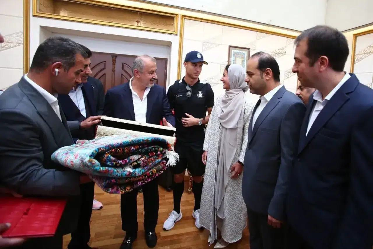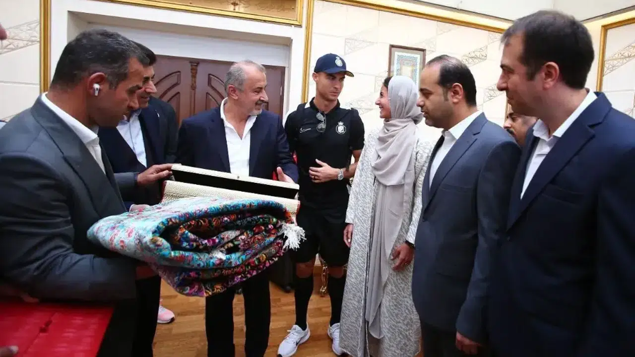 Persepolis Tahran Kulübü Başkanı Rıza Derviş, İran'a gelen Al Nassr oyuncusu Cristiano Ronaldo'ya İran halısı hediye etti.