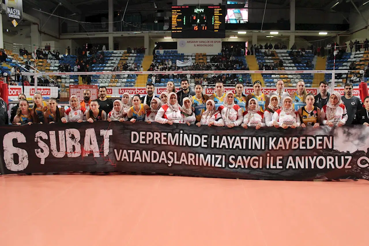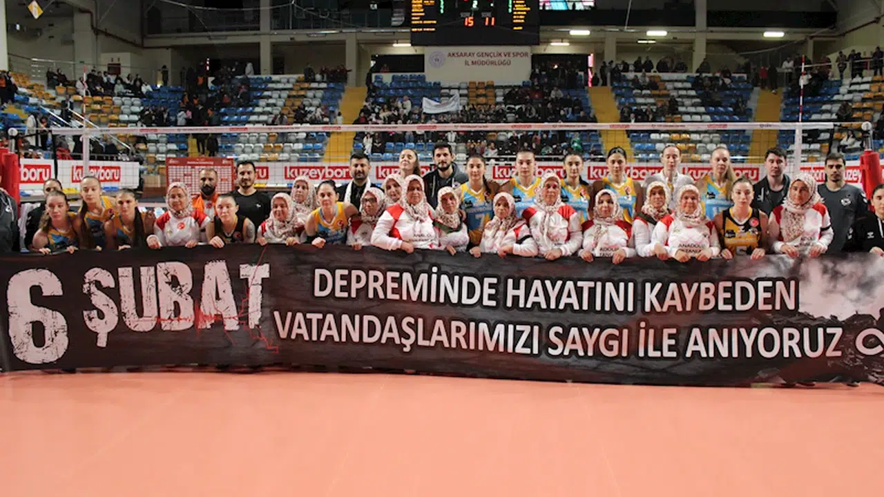 Erkan ALTUNTAŞ/AKSARAY, (DHA)- AKSARAY'da köylü kadınların kendi imkanlarıyla kurduğu 'Anadolu Sultanları’ voleybol takımının sporcuları, Sultanlar Ligi'nde mücadele eden Kuzeyboru takımıyla 6 Şubat depremlerinde hayatını kaybedenlerin anısına maç yaptı. Karşılaşmada dostluk kazandı.