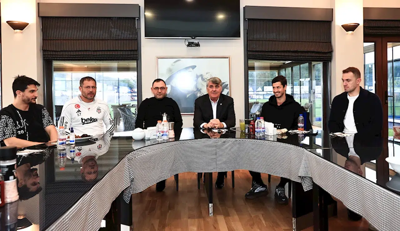 "Başkanımız Serdal Adalı, BJK Nevzat Demir Tesisleri’nde Teknik Sorumlumuz Serdar Topraktepe, teknik ekibimiz ve futbolcularımızla bir araya geldi. Buluşmada Yönetim Kurulu Üyemiz Murat Kılıç da yer aldı. Teknik Sorumlumuz Topraktepe ve futbolcularımızla sohbet eden Başkanımız Adalı, siyah-beyazlılarımıza Trendyol Süper Lig’deki Ç. Rizespor maçında başarılar diledi. Başkanımız Serdal Adalı, 2025 yılının takımımıza başarı getirmesi temennisinde bulunarak teknik ekibimizin ve futbolcularımızın yeni yılını kutladı."