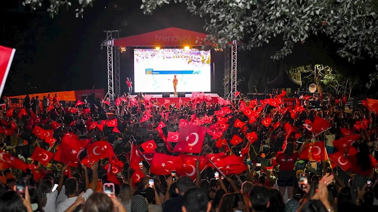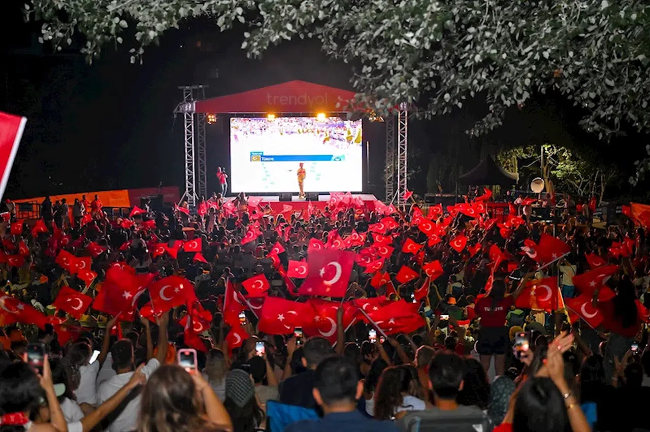 Müsabakalar öncesinde DJ'in çaldığı şarkılara Türk bayraklarıyla eşlik eden kalabalık, yaz boyunca İstanbul’un kalbinde ay-yıldızlı millilere tezahüratlarıyla destek verdi.