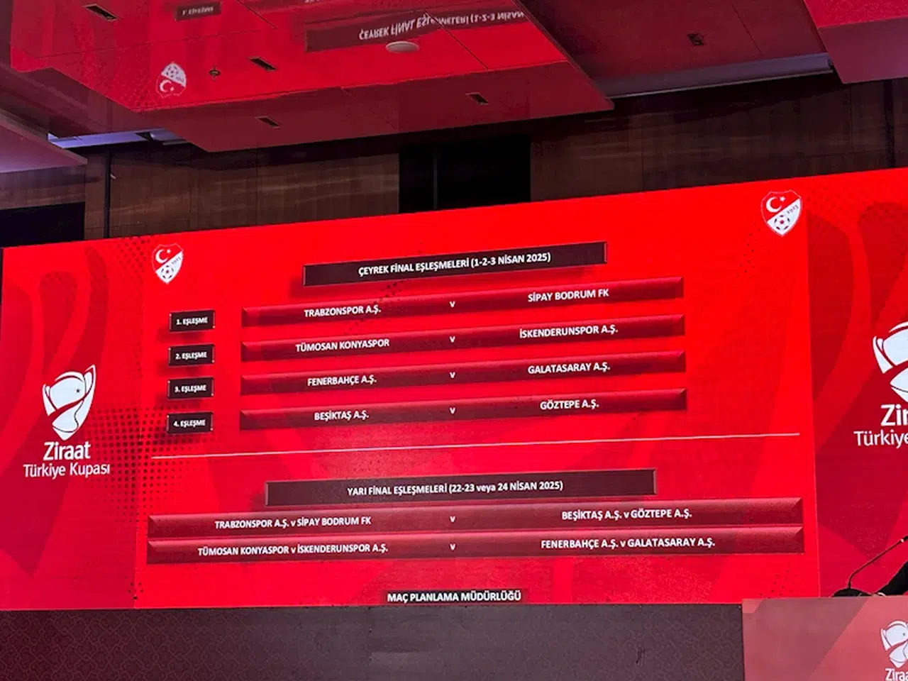 Efe ALDEMİR / İSTANBUL,(DHA)- TÜRKİYE Kupası’nda çeyrek final ve olası yarı final eşleşmeleri belli oldu. Çeyrek final turunda Fenerbahçe ile Galatasaray eşleşti.