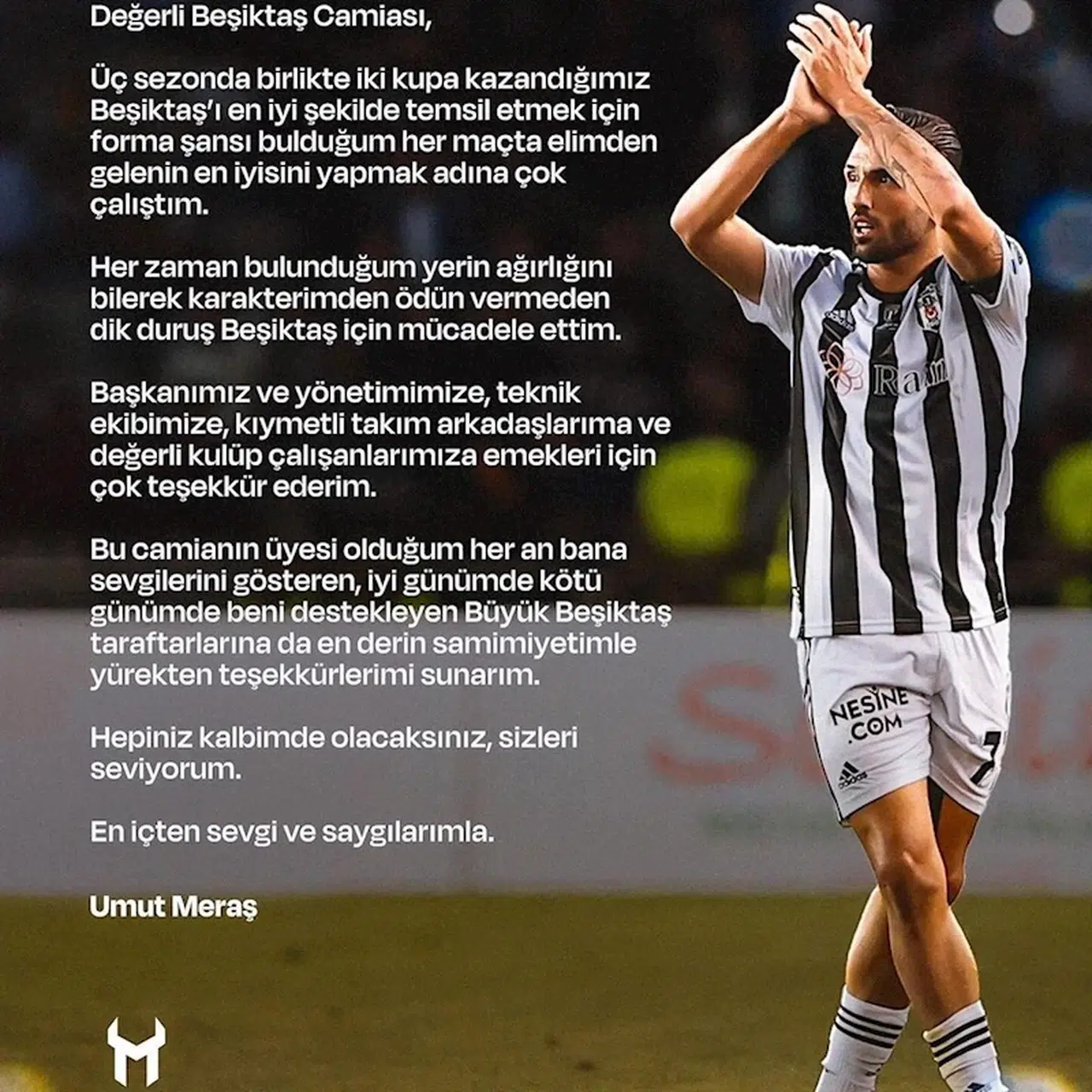 İSTANBUL, (DHA) - Geride kalan sezonda Beşiktaş formasını giyen 28 yaşındaki sol bek Umut Meraş, siyah-beyazlı takıma veda etti.