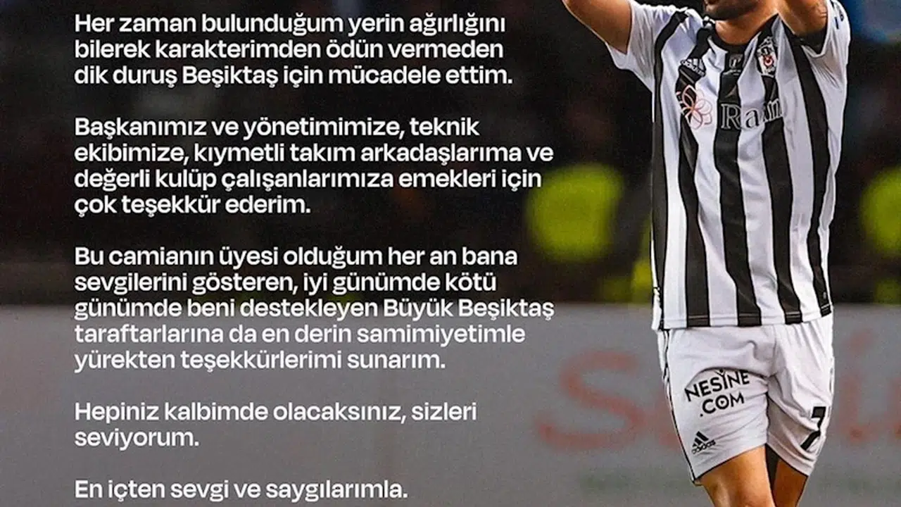 Bu camianın üyesi olduğum her an bana sevgilerini gösteren, iyi günümde kötü günümde beni destekleyen Büyük Beşiktaş taraftarlarına da en derin samimiyetimle yürekten teşekkürlerimi sunarım. Hepiniz kalbimde olacaksınız, sizleri seviyorum. En içten sevgi ve saygılarımla."
