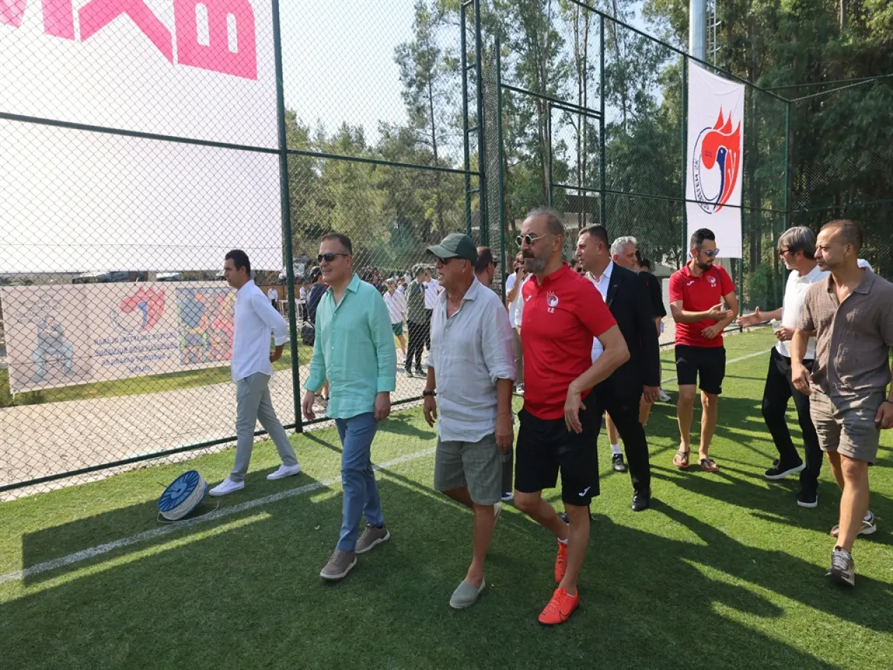 Sahanın açılış kurdelesini Muğla Valisi İdris Akbıyık, Yılmaz Erdoğan, Fatih Terim ve ünlü isimler kesti. Açılışın ardından Düşbelen Spor-Altınordu U11 ve U14 takımları arasında dostluk maçı oynandı. Ünlü futbolcular ve sanatçılar da özel maçta karşılaştı. Açılışta konuşan Yılmaz Erdoğan, futbol tutkusunun çocukluk yıllarından beri sürdüğünü belirtip, "Futbol aşkı, insanın içinde başlayınca bitmiyor.