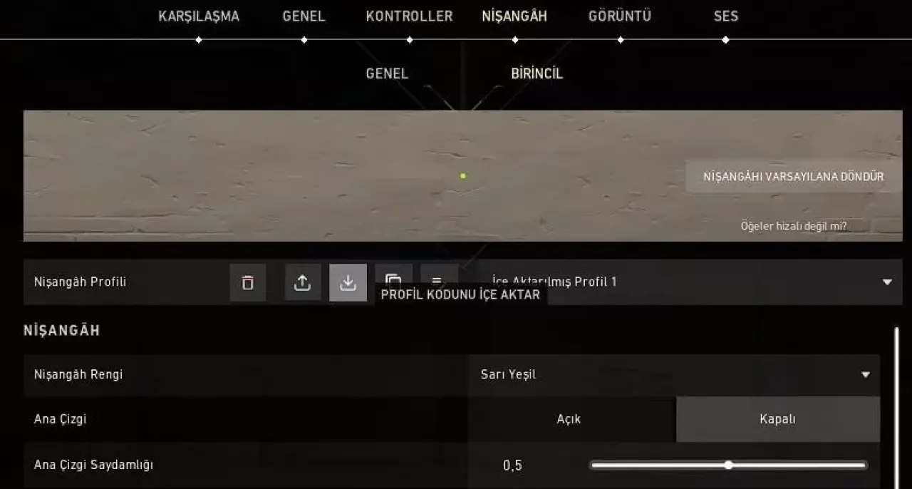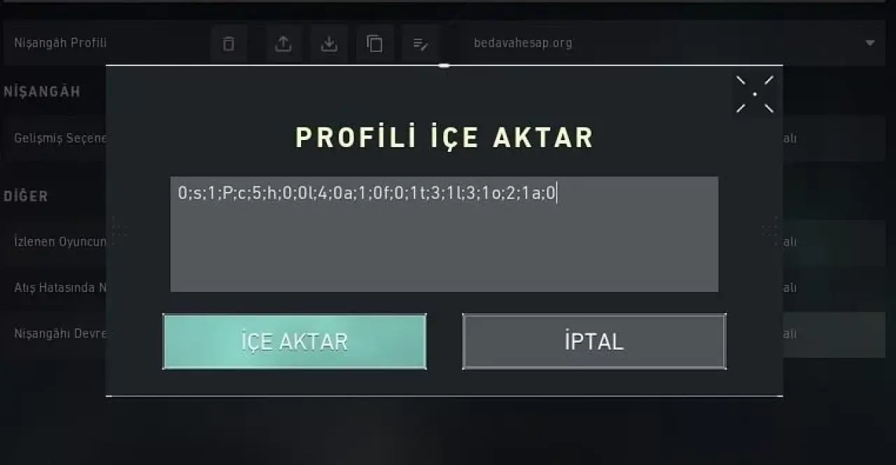 - Nişangah profili kısmından Profil Kodunu İçe Aktar seçin.
