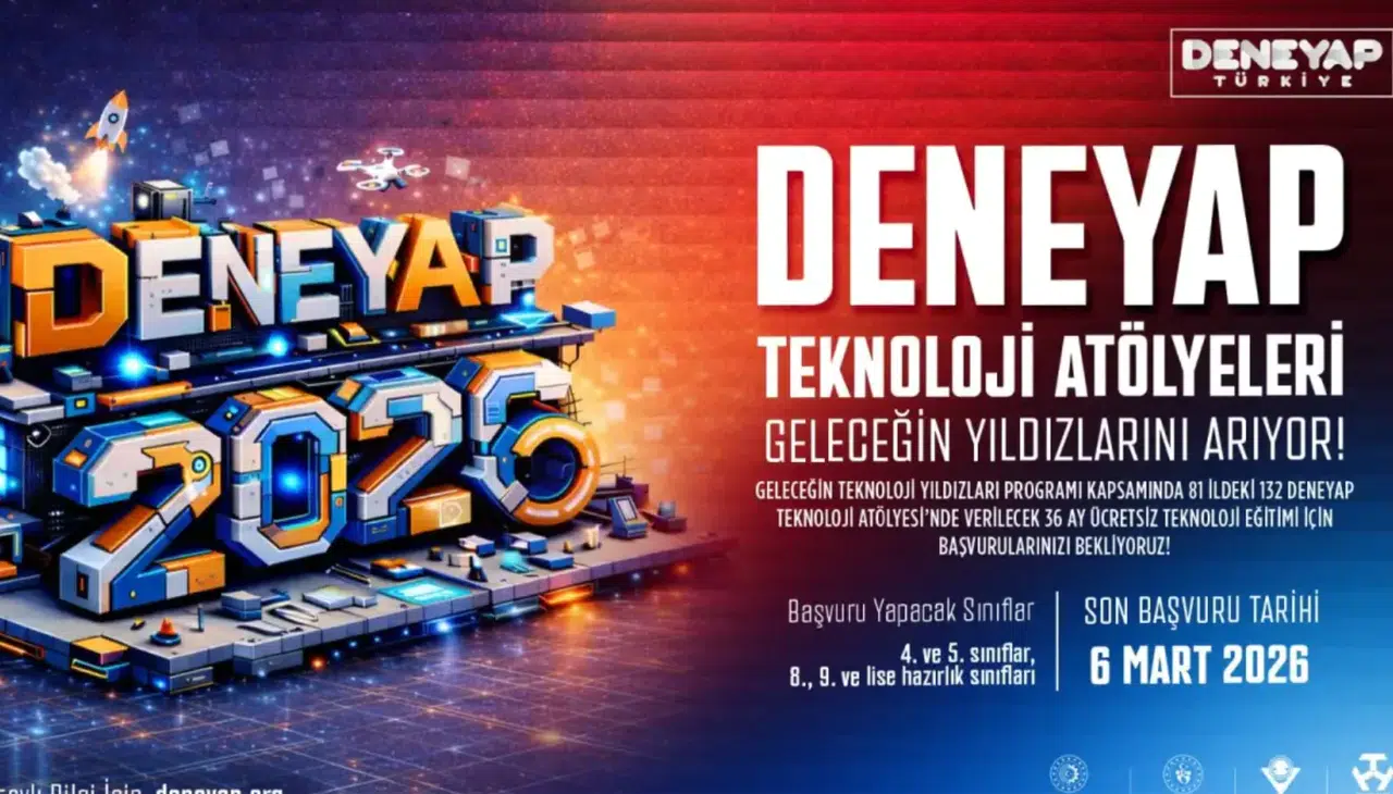 Türkiye’nin Milli Teknoloji Hamlesi vizyonuyla şekillenen ve T.C. Sanayi ve Teknoloji Bakanlığı, T.C. Gençlik ve Spor Bakanlığı, TÜBİTAK ve Türkiye Teknoloji Takımı Vakfı (T3 Vakfı) paydaşlığında yürütülen “DENEYAP Teknoloji Atölyeleri” kapsamında, teknolojiye tutkuyla bağlı, hayallerini üretime dönüştürmek isteyen gençler için 2026 Öğrenci Seçme Süreci başvuruları başladı.