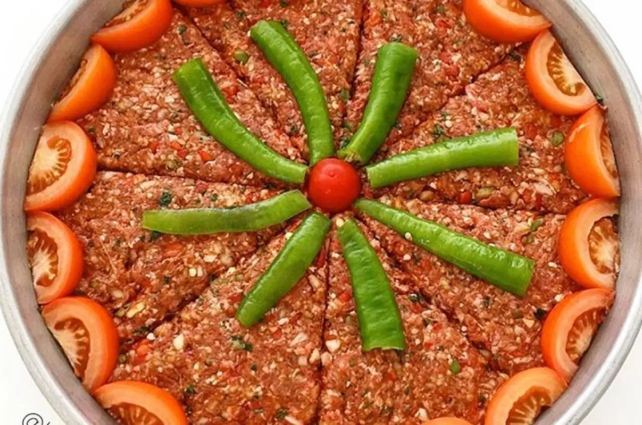Antakya tepsi kebabı, adından da anlaşılacağı gibi, geniş yuvarlak bir tepsiye yayılarak fırında pişirilen kıymalı bir kebap çeşidi. Ama bu tanım onu tarif etmeye yetmez. Çünkü bu kebap, sadece etin değil, baharatın, sebzenin ve ellerin marifetiyle kimlik kazanıyor. En önemli püf noktası, etin zırh bıçağıyla çekilmesi. Bu yöntem, kebabın kıvamını ve lezzetini doğrudan etkiliyor. Zırh kıyması; ne çok ince ne çok kalın, tam kararında bir doku sunuyor.