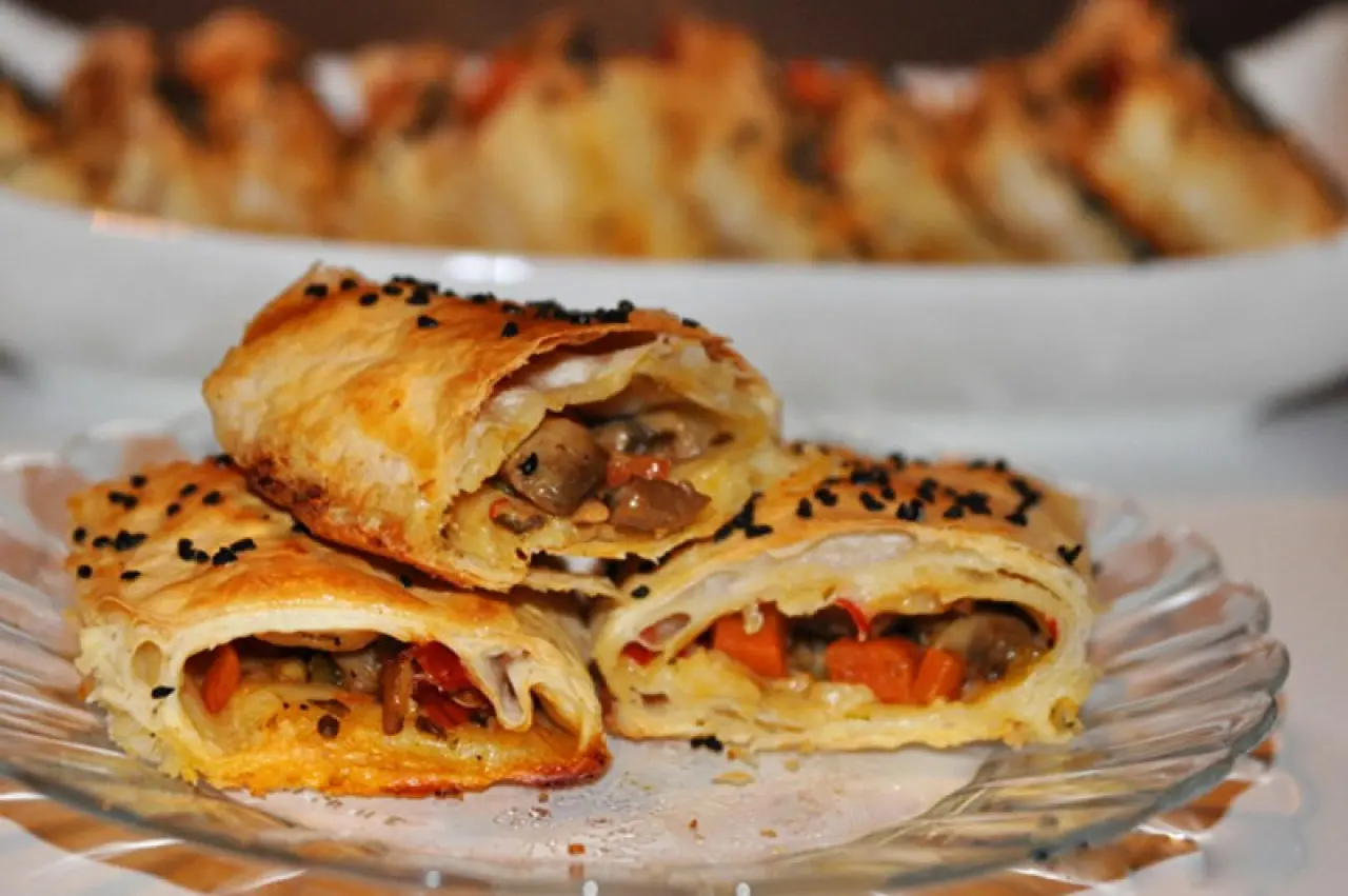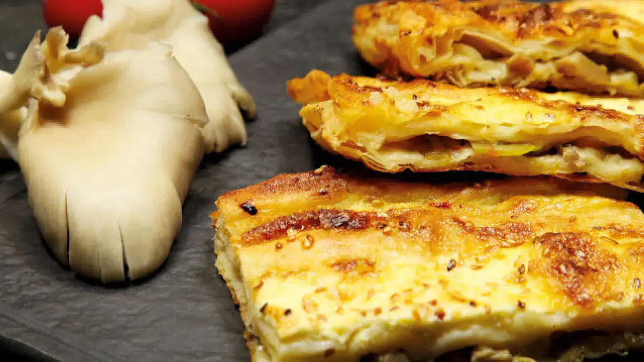 20 dakikada hazırlanan mantarlı börek 30 dakikada pişer.