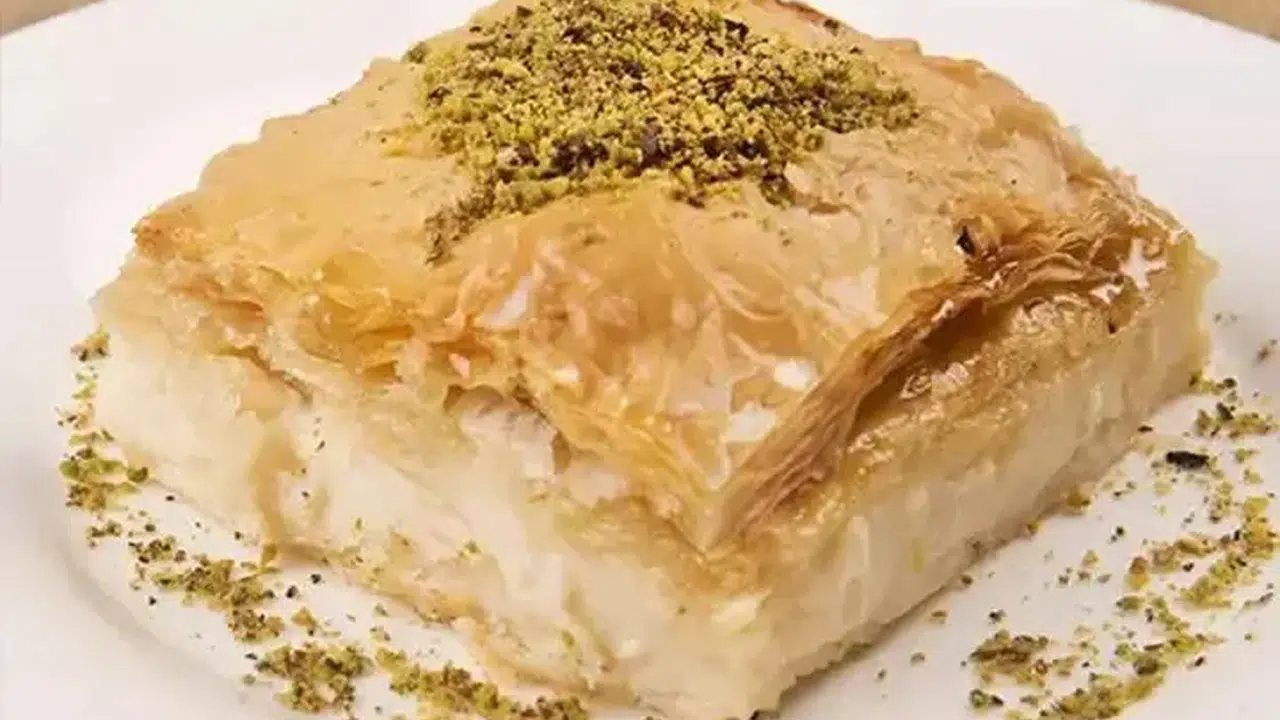 - Kalan 6 yufkayı da aynı şekilde hazırlayıp muhallebinin üzerine serin, her yufka arasına tereyağı sürmeyi unutmayın.