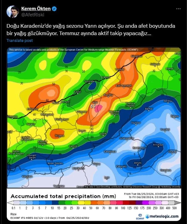 "Doğu Karadeniz'de yağış sezonu Yarın açılıyor. Şu anda afet boyutunda bir yağış gözükmüyor. Temmuz ayında aktif takip yapacağız..."