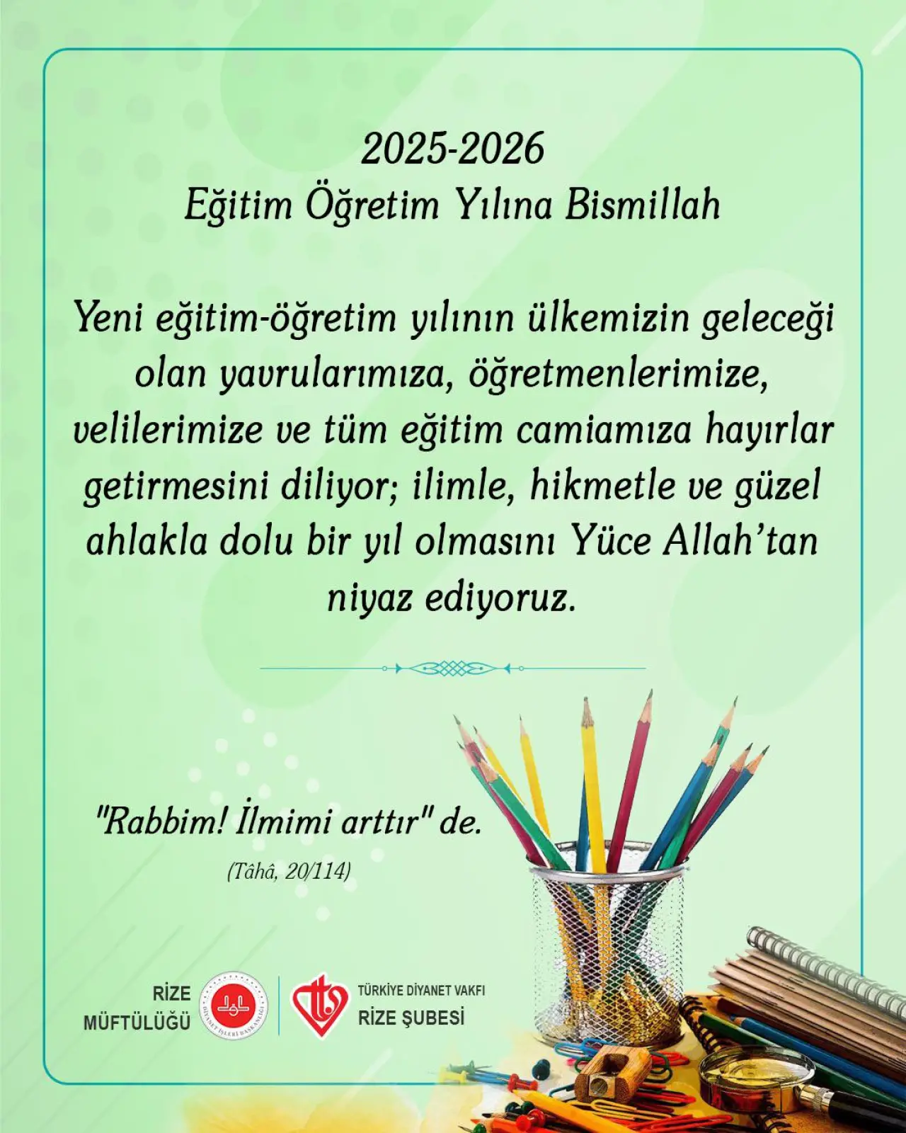 Rize Müftülüğü’nden 2025-2026 Eğitim-Öğretim Yılı Mesajı